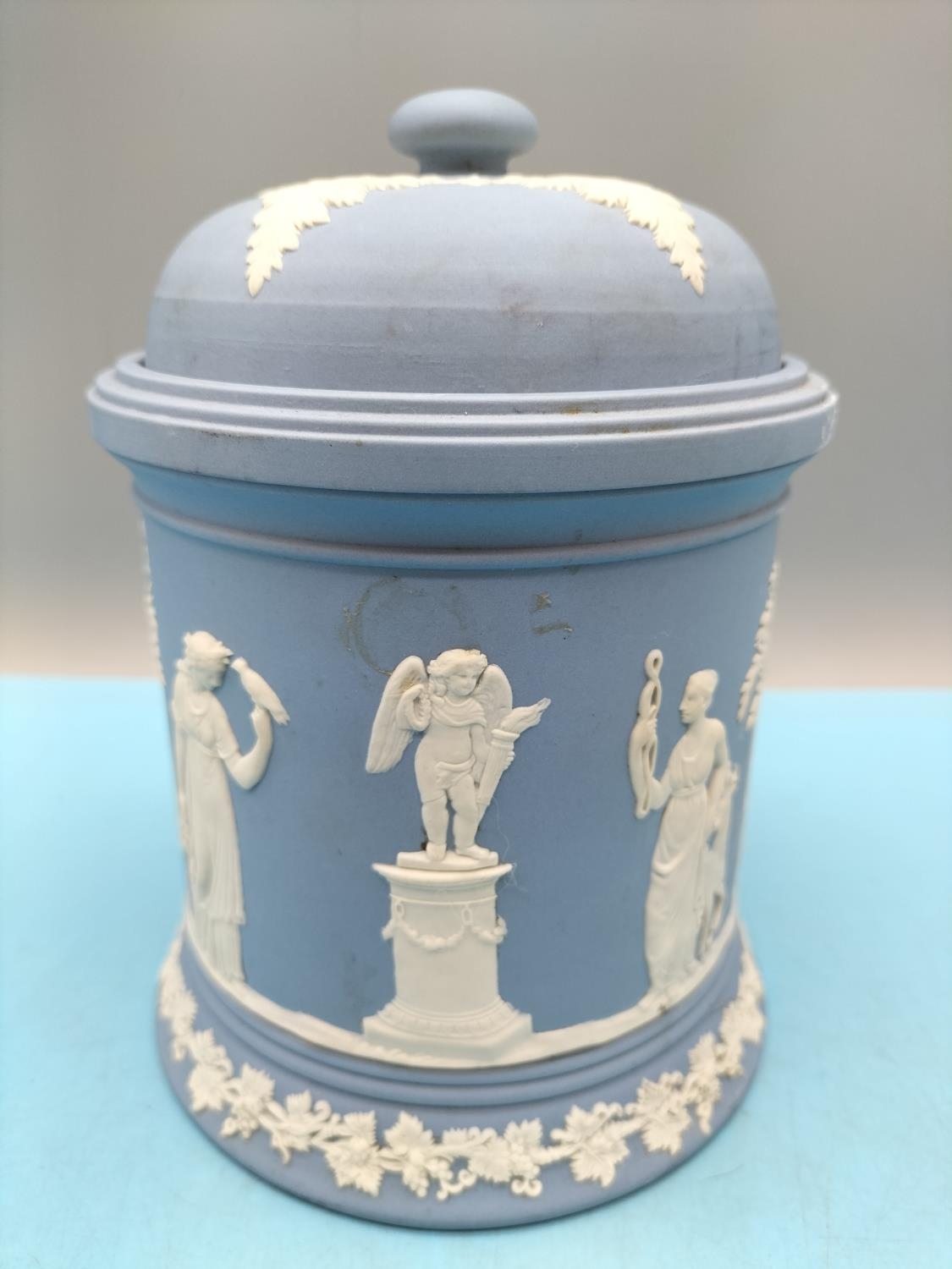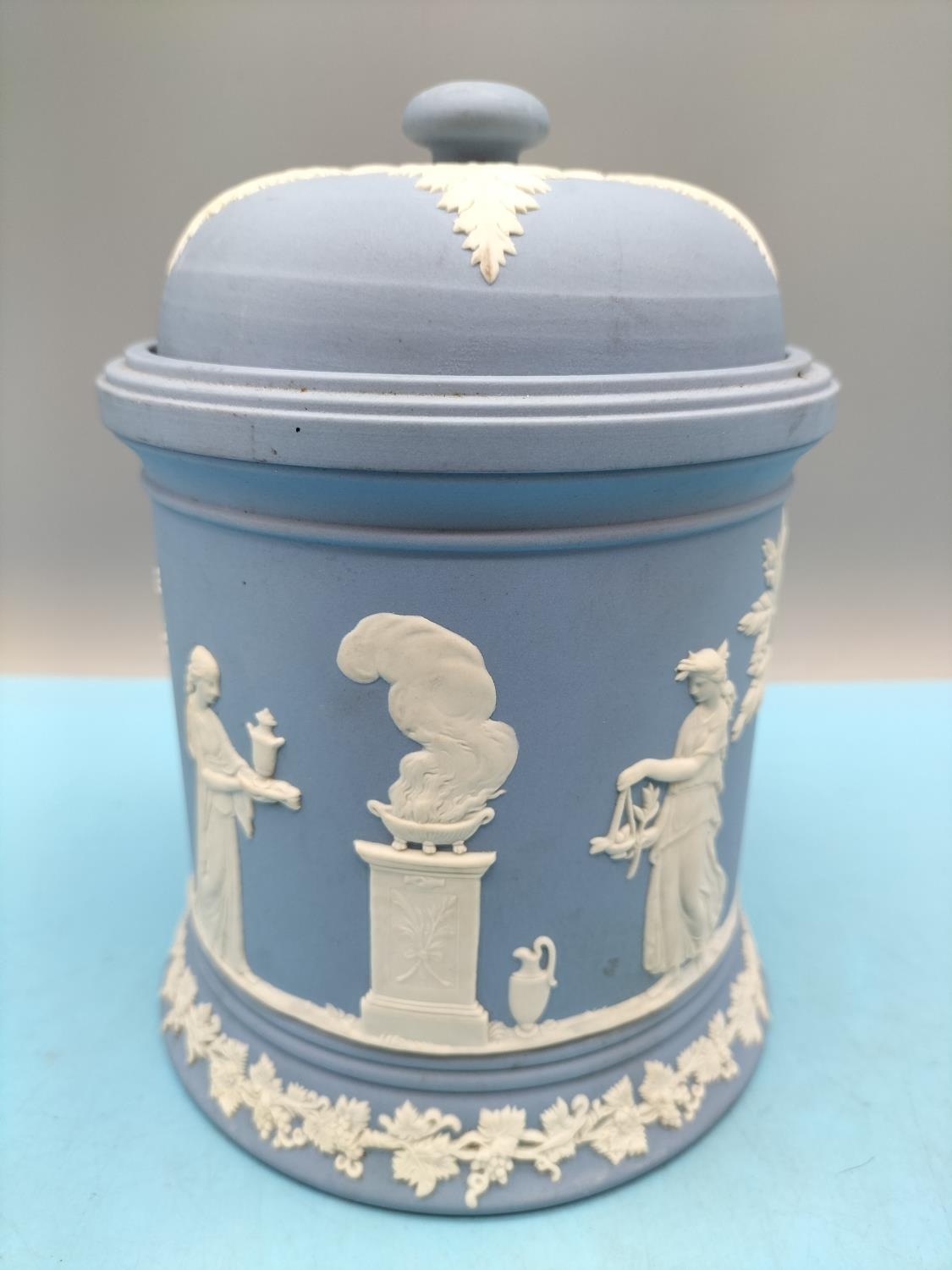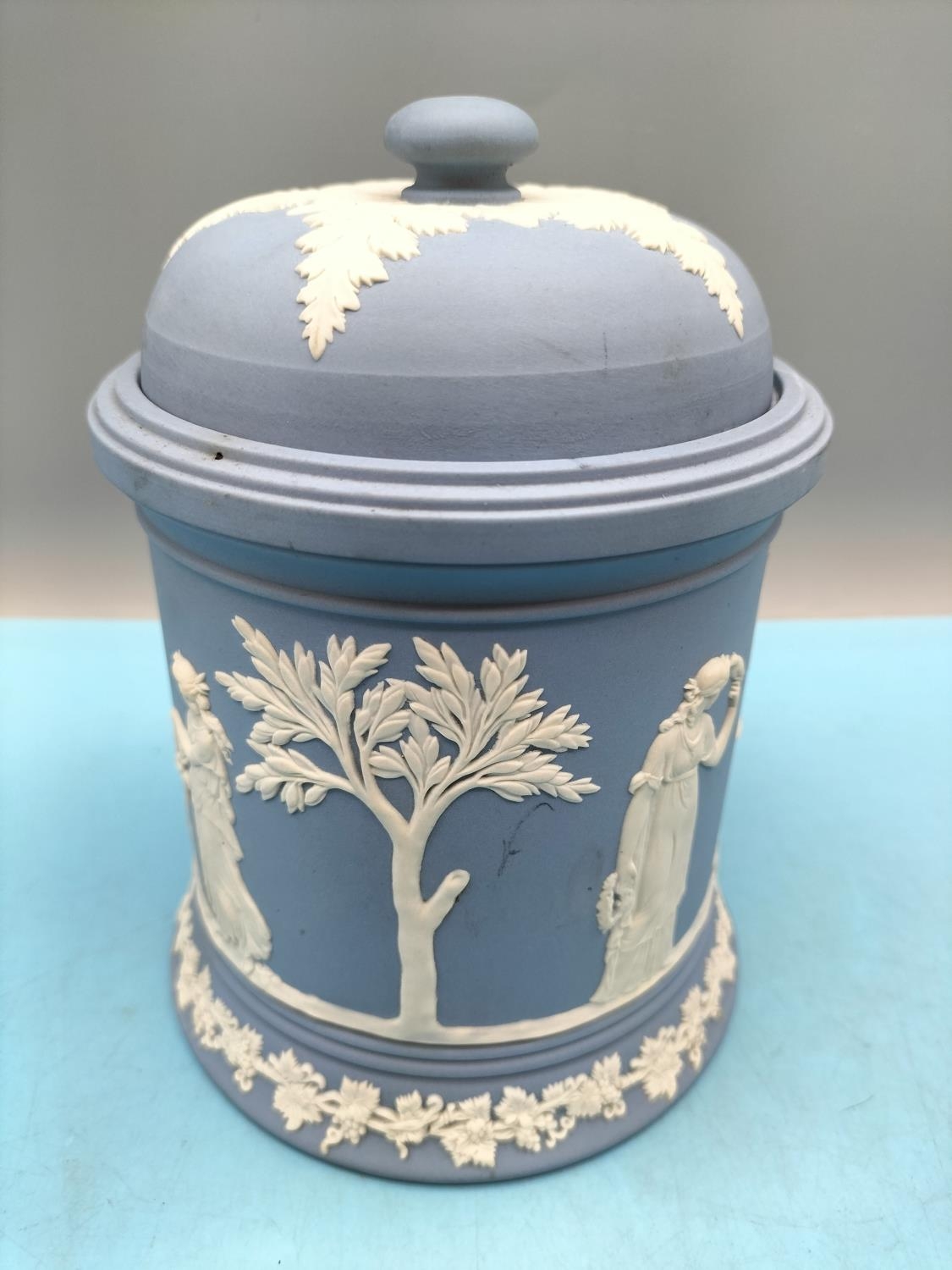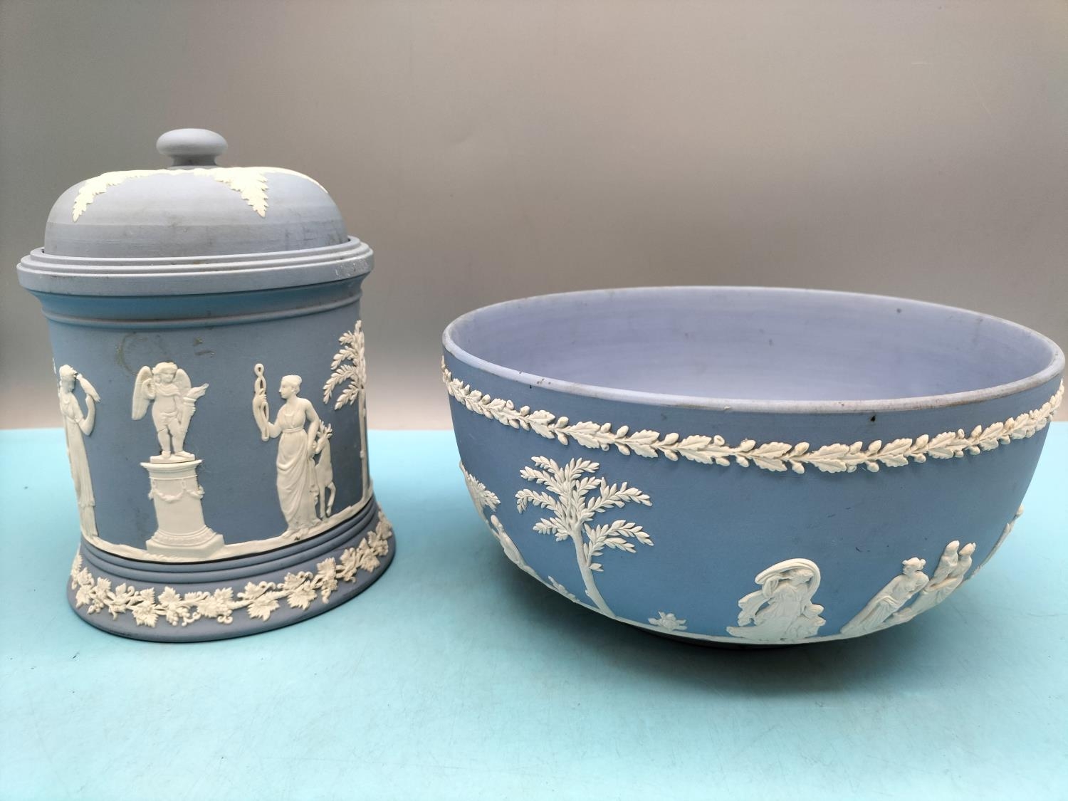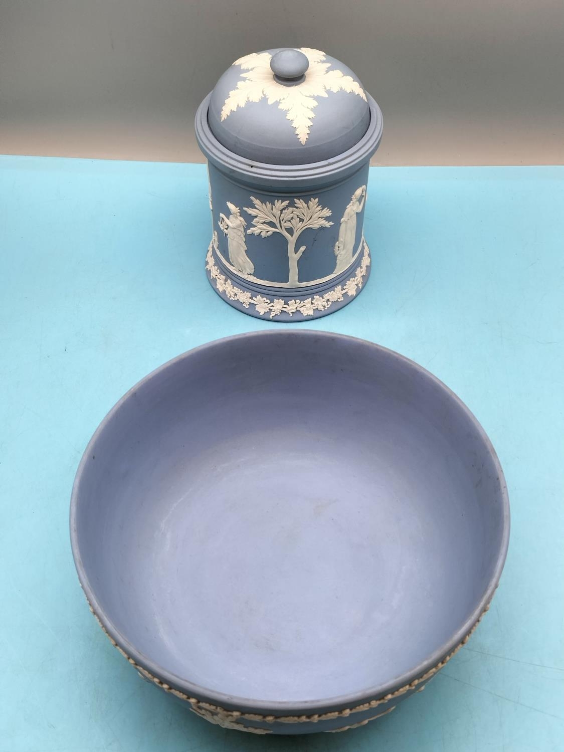 Wedgwood Jasper Large 18cm High Tobacco Jar plus Fruit Bowl.