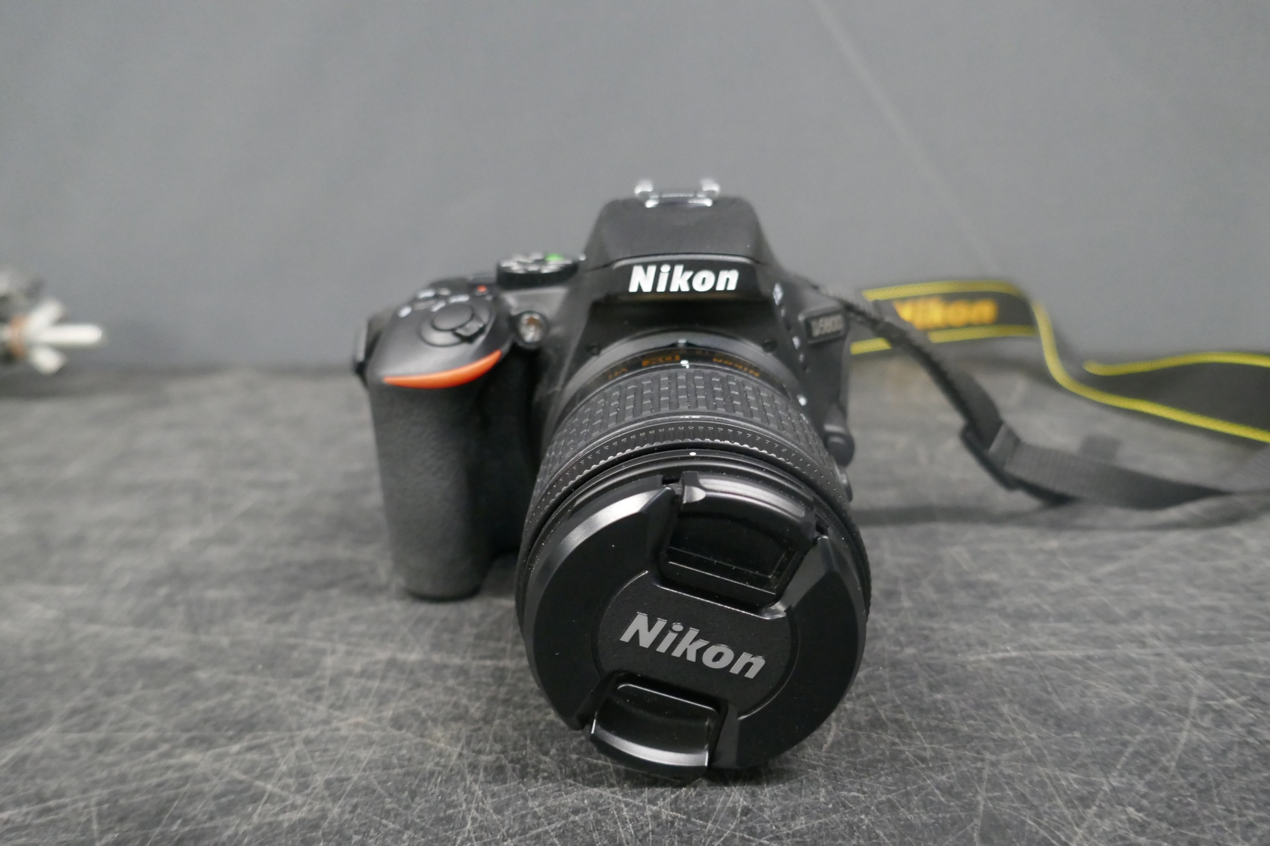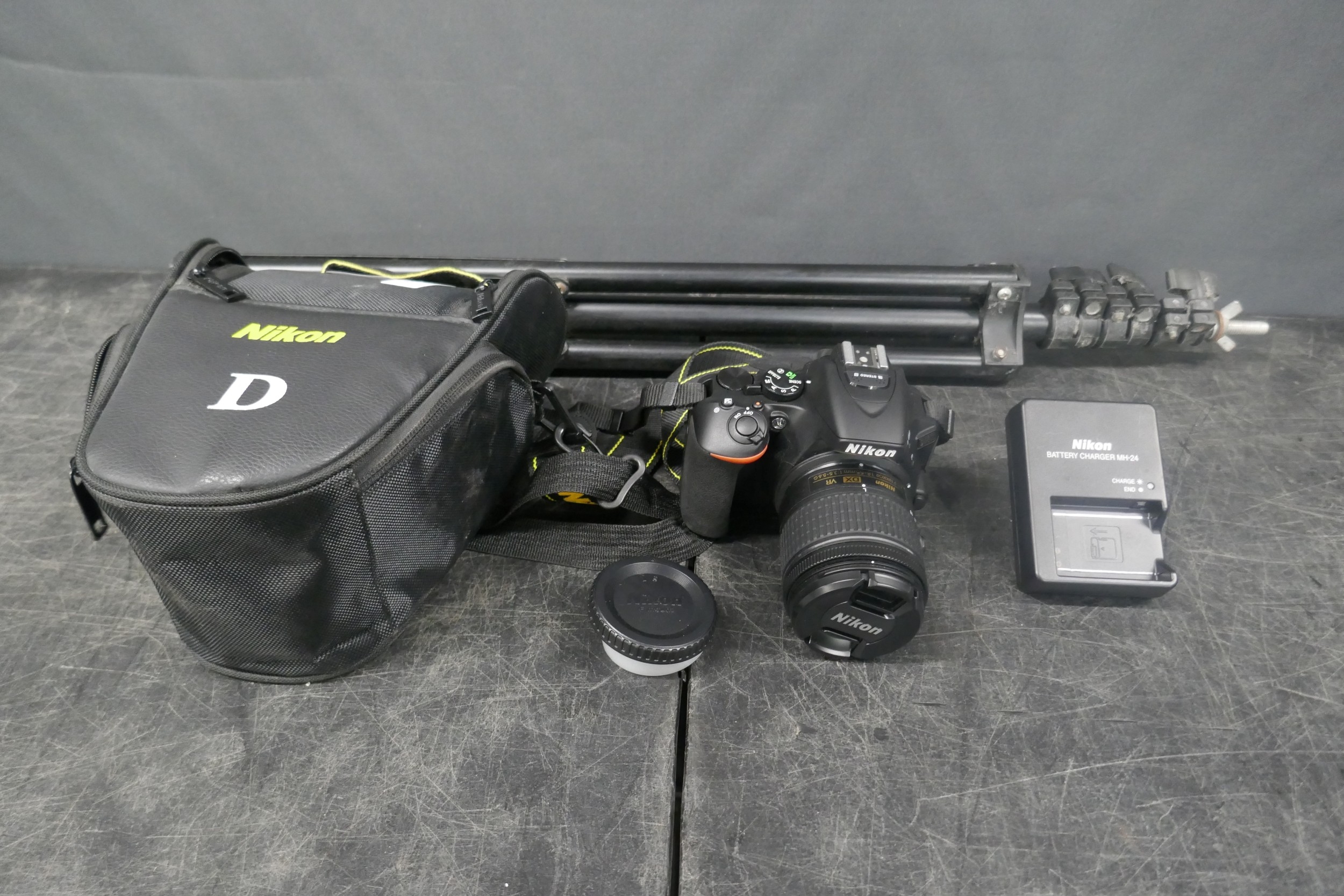A Nikon D5 600 camera with a Nikon AF-P 18-55mm, 1:3.5 lens and tripod