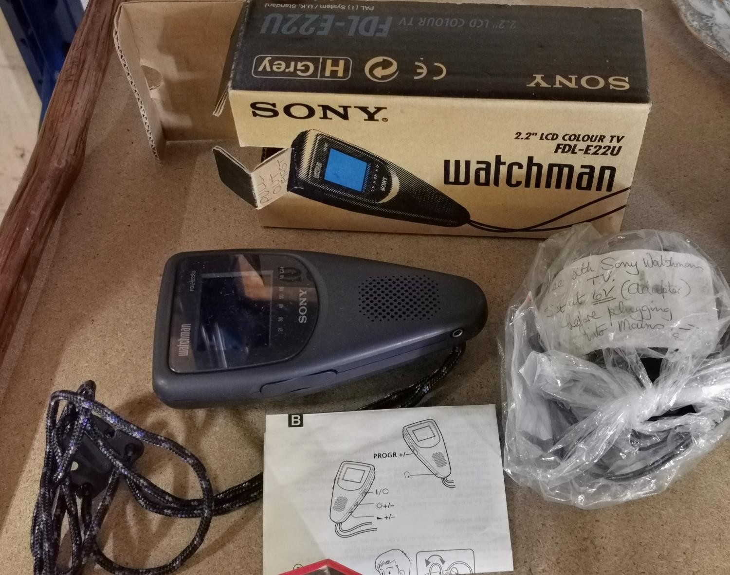 Boxed retro Sony Watchman model FDL-E22U 2.2" LCD hand held colour TV