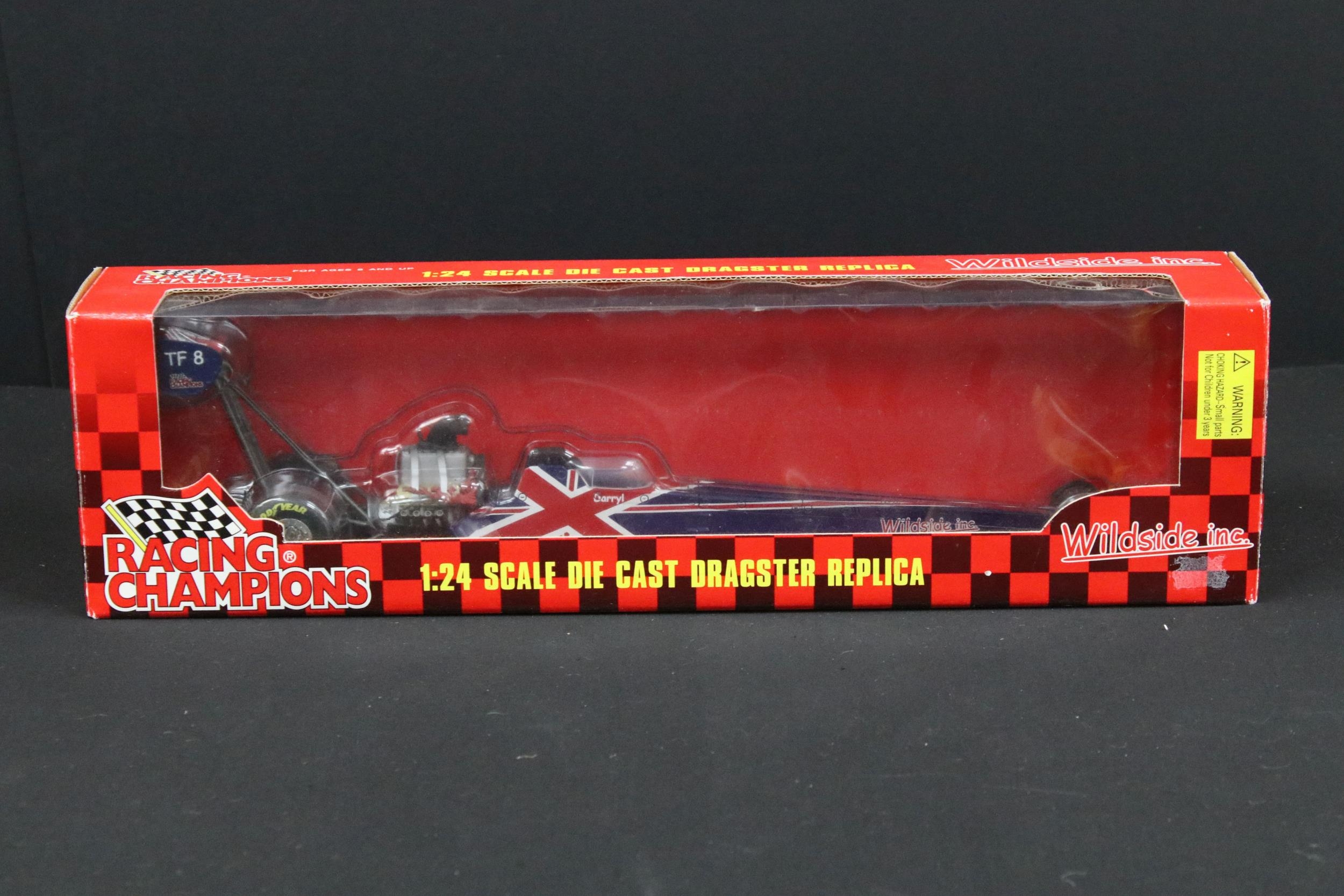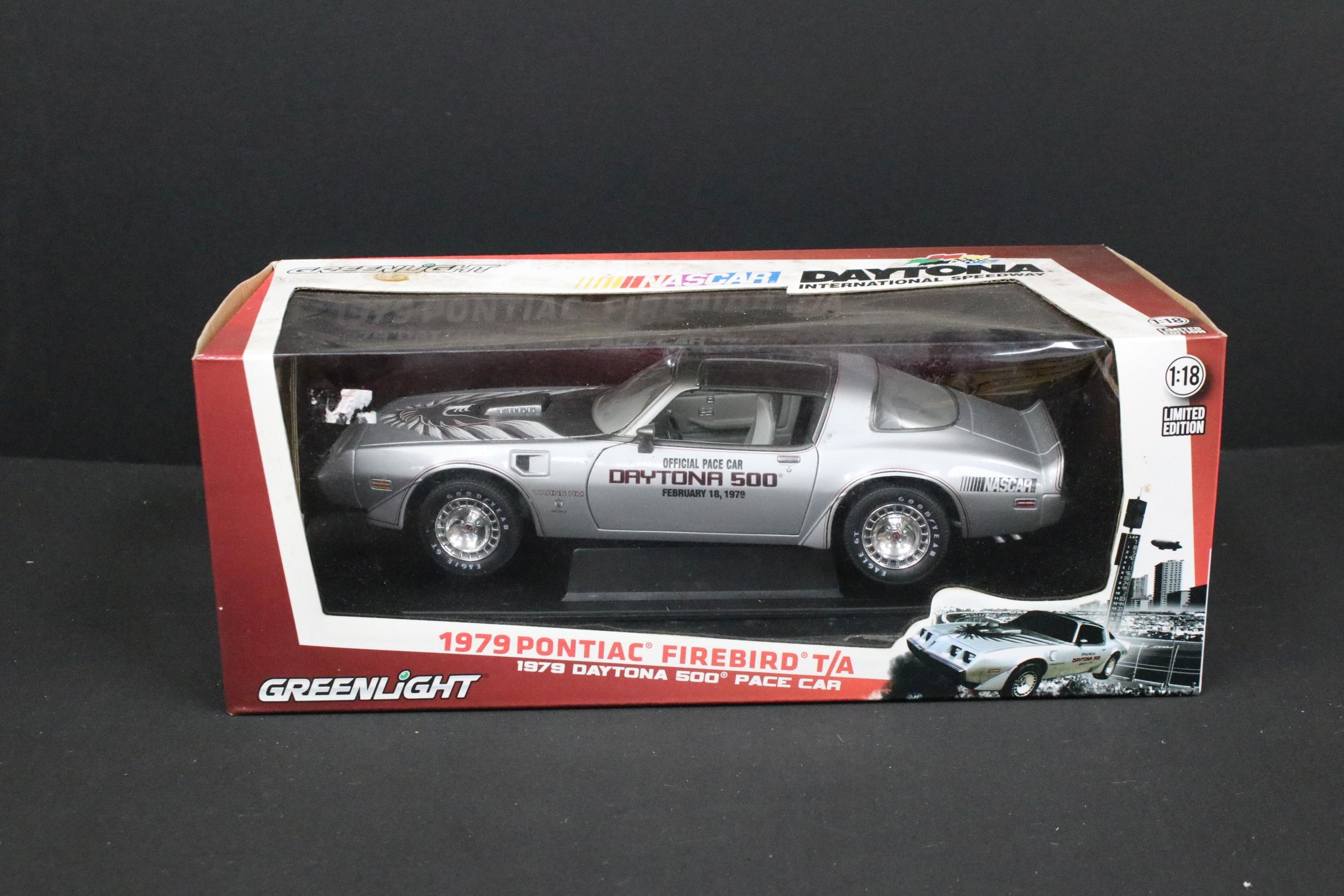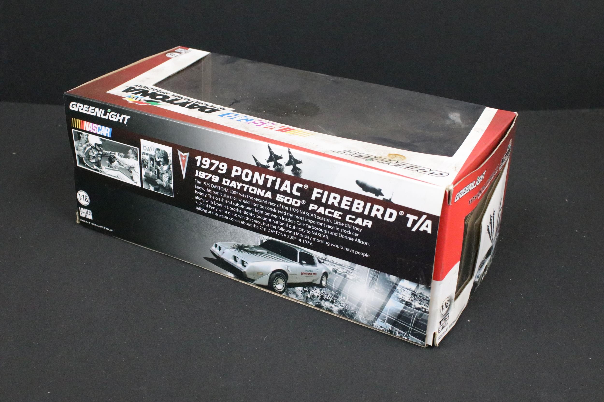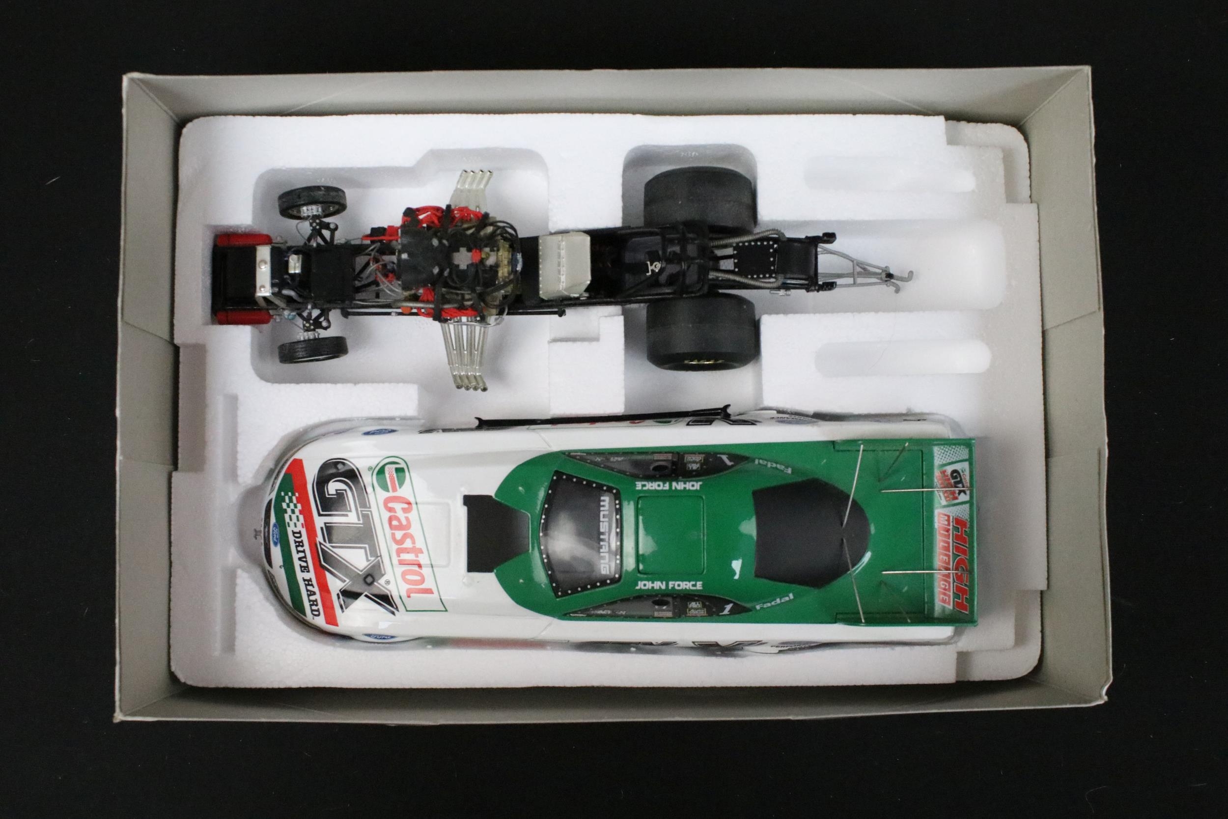 Four boxed Nascar / Racing diecast models to include ltd edn Action Collectables John Force Castrol GTX 2002 Mustang Funny Car, ltd edn Greenlight 1979 Pontiac Firebird TA (grubby box), ltd edn Racing Collectables Club of America Winston World 1996 Pontiac and Wildside Racing Champions Dragster, diecast ex, boxes vg unless stated