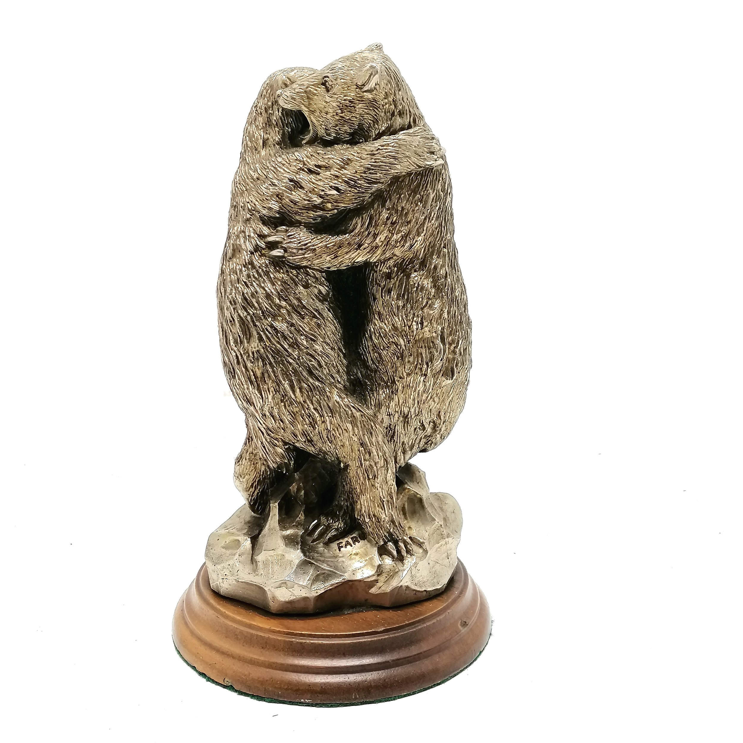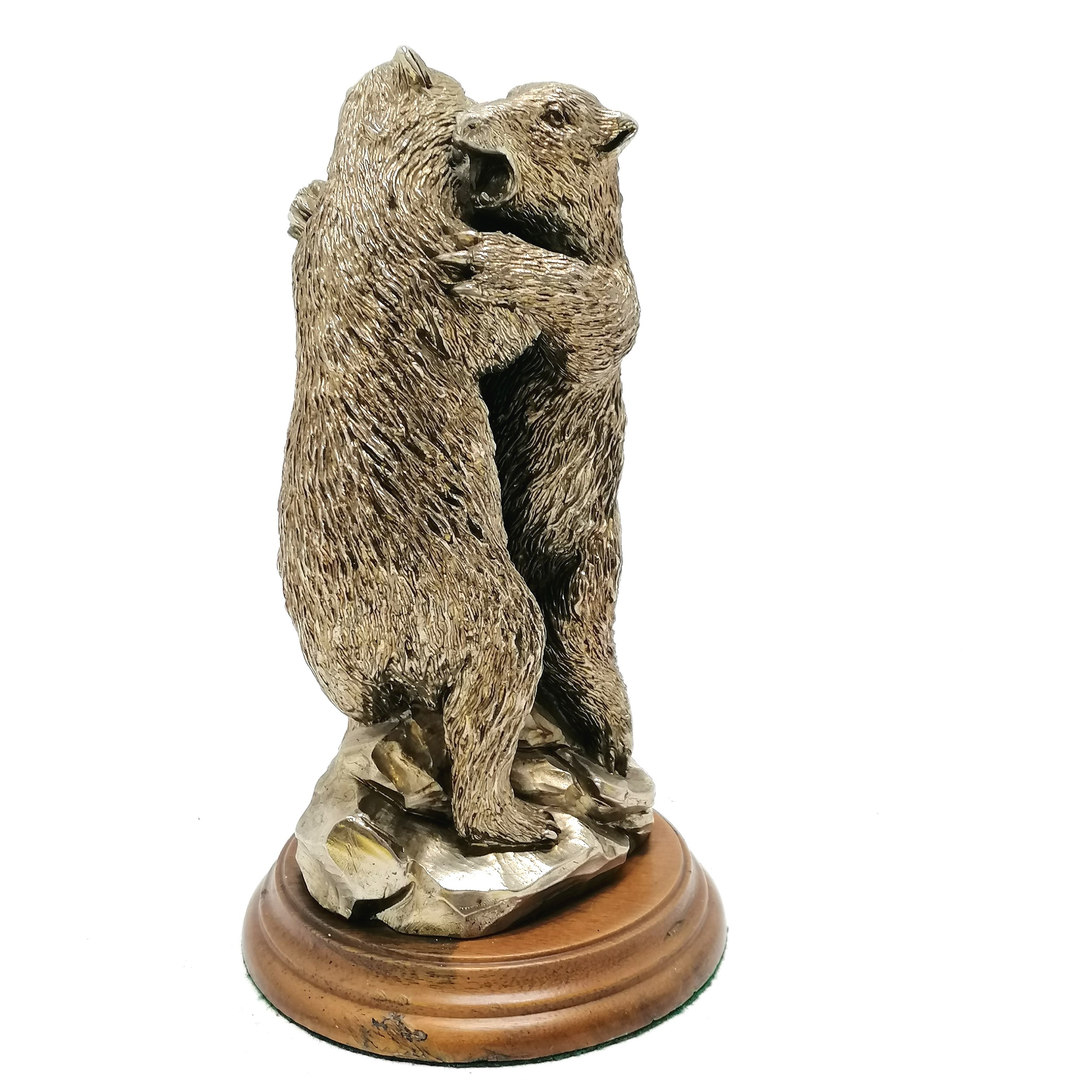 Faro signed figure of 2 bears fighting on a round wooden base 26cm high