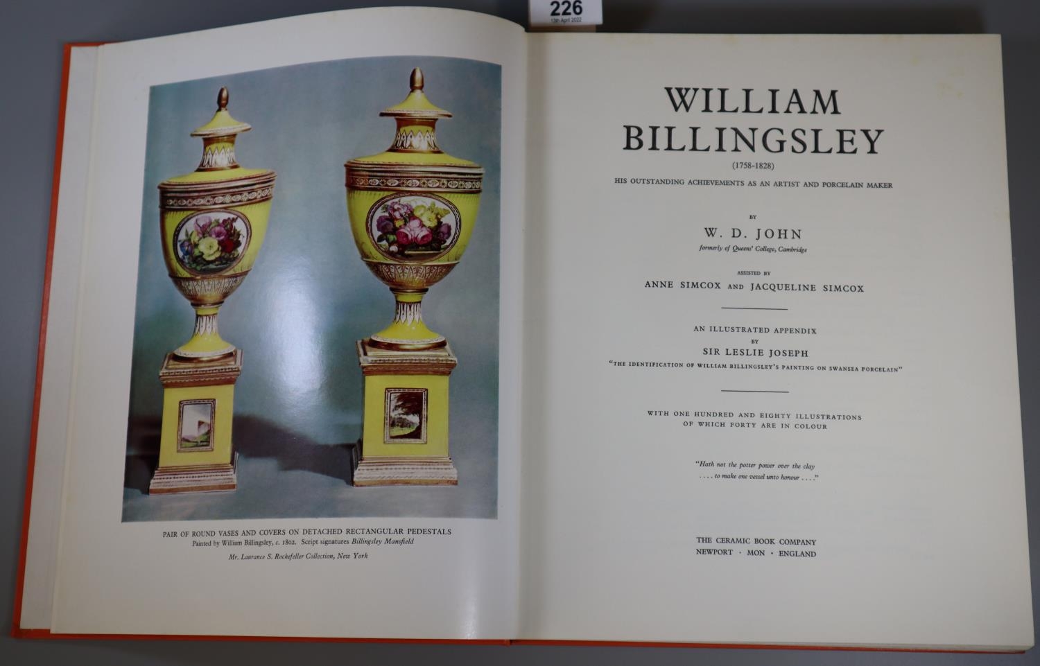 Billingsley, William (1758-1828), His Outstanding Achievements as an Artist and Porcelain Maker.