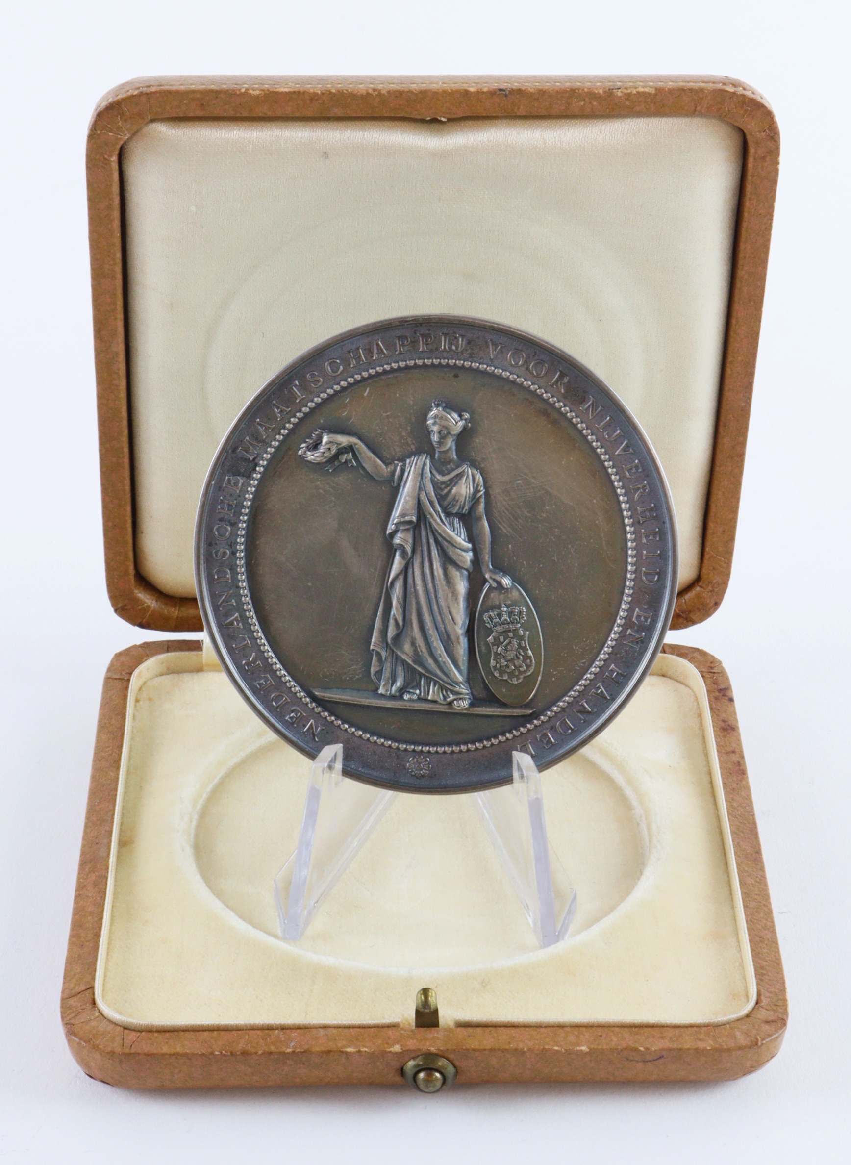 Netherlands, Industrial Award / Exhibition Medal: Dutch (tests) silver d.63mm, 73.42g: Netherlands, Society for Industry & Trade, Enschede, Lonneker medal June 1930. Iridescent toned GEF with original case.