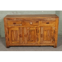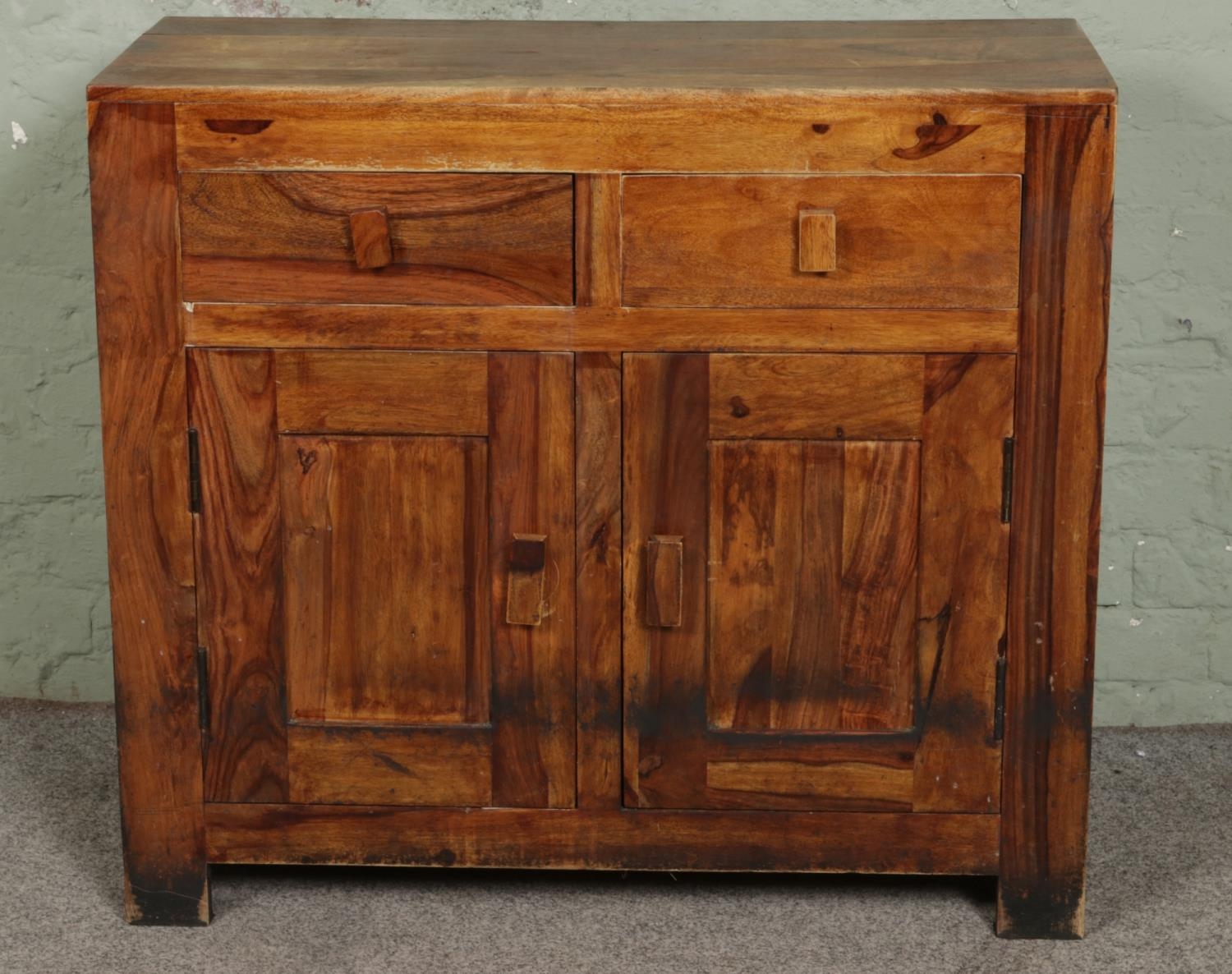 A contemporary mango wood sideboard with two upper drawers and two cupboards below. L90cm, H80cm.