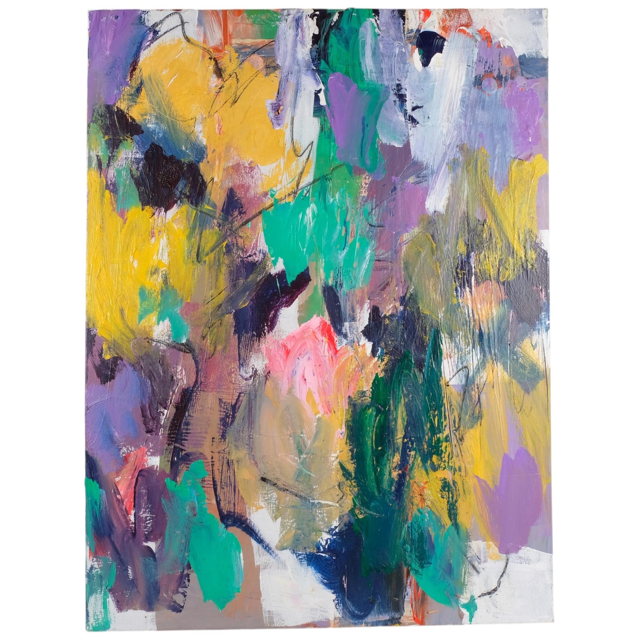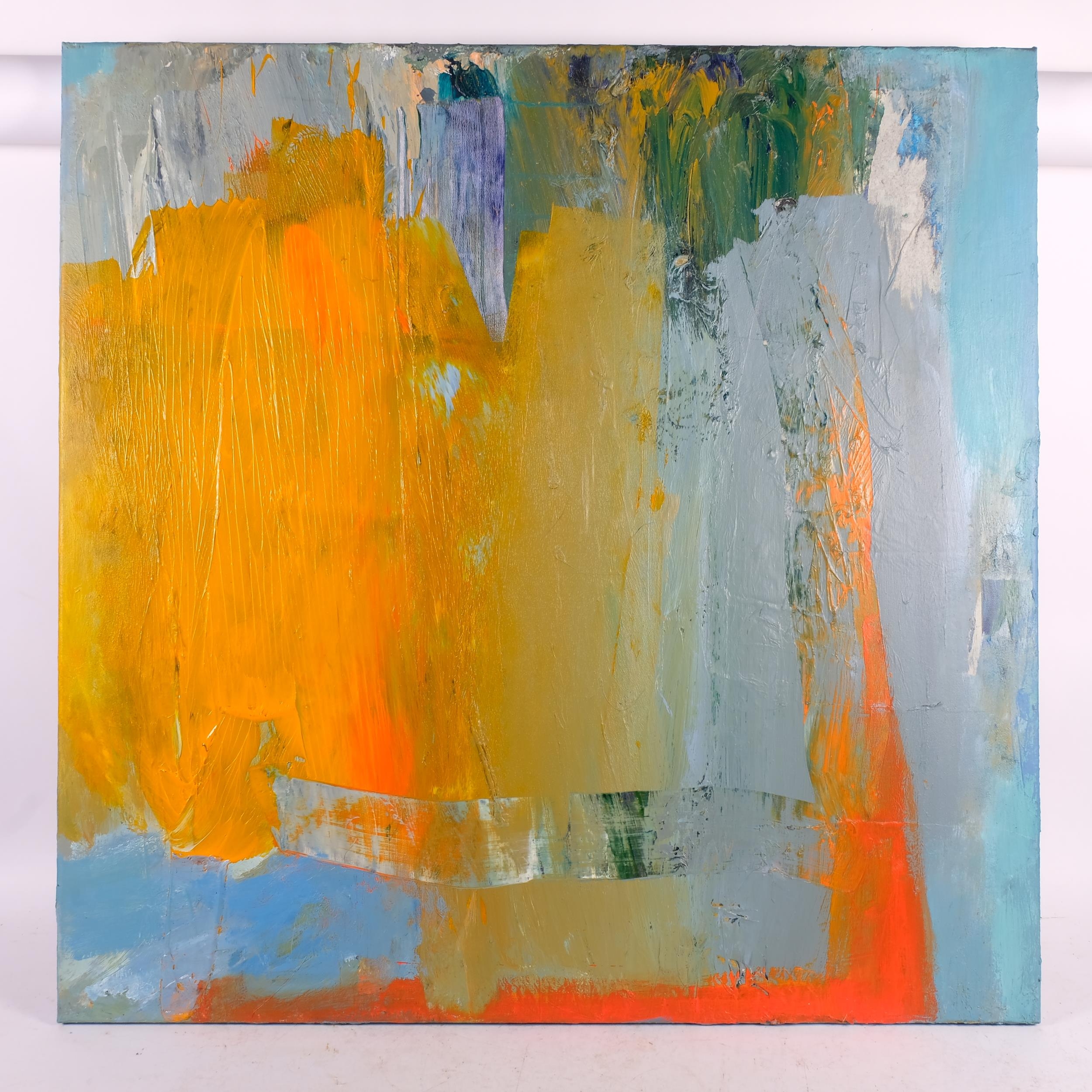 Deborah Lanyon, 2 contemporary abstract composition, acrylic on canvas, 90cm x 90cm, unframed (2)