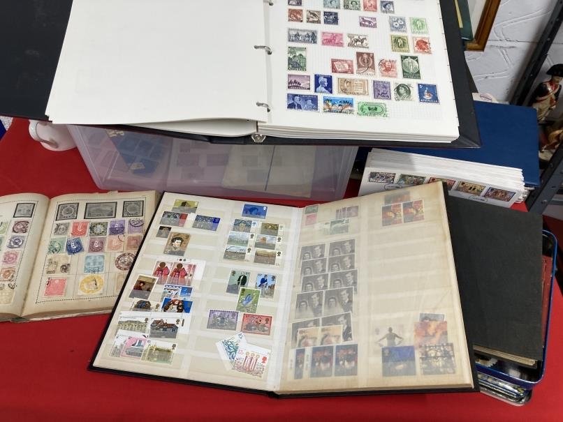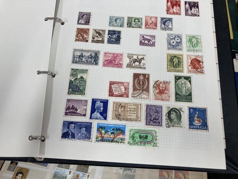 Stamps: Heavily populated Stanley Gibbons Worldex looseleaf album 19th to mid 20th cent. World stamps, mainly used, nice France and Germany collection. Plus a nice looseleaf album of Canada, USA, Australia and New Zealand, looseleaf album and stockbook of GB Elizabeth II reign, two small early 20th cent. World albums, a tin of loose stamps and covers and an album of first day covers 1970 - 1979.