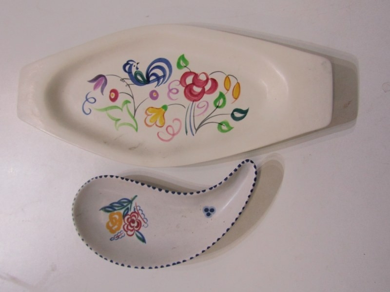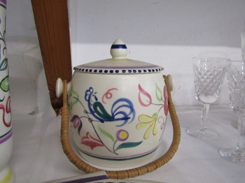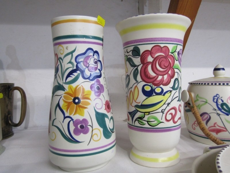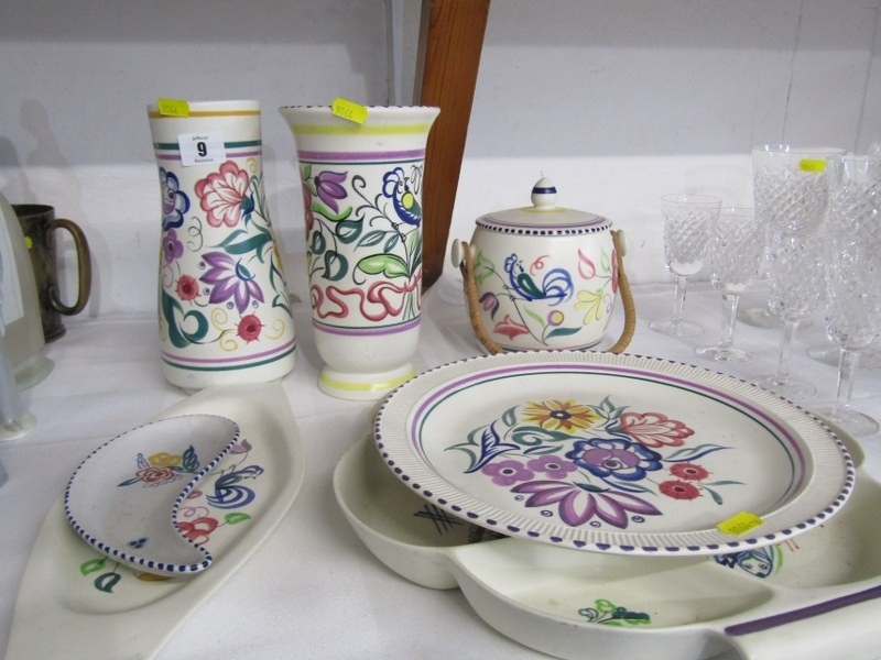 POOLE POTTERY, collection of Poole pottery including 2 vases, 22cm height, lidded biscuit barrel, hors d'oeuvres dish and 3 other pieces