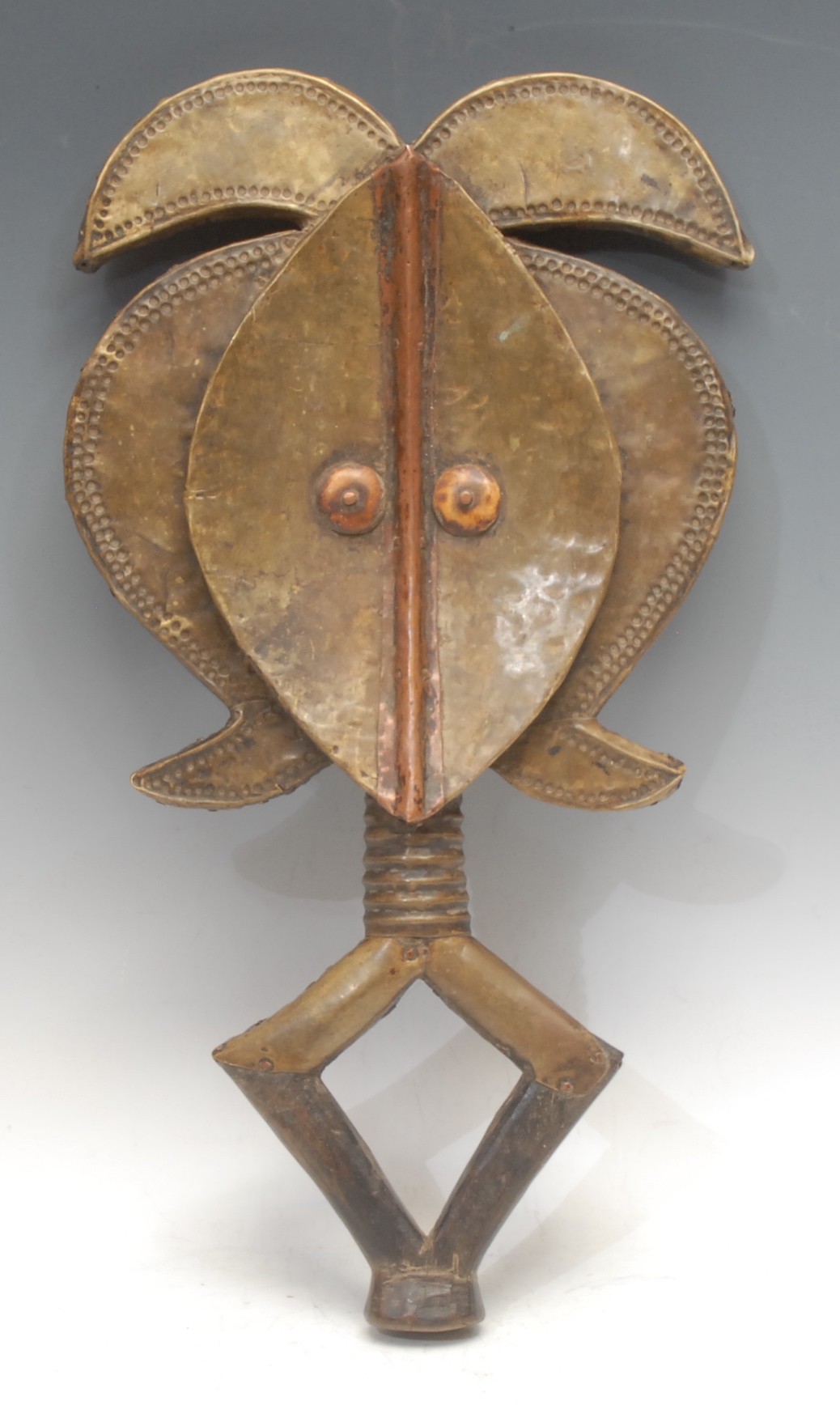 Tribal Art - a Kota hardwood and copper mounted reliquary guardian figure (mbulu ngulu), 47cm high, 25cm wide, Gabon