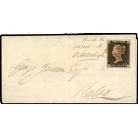 GB 1840 1d black, plate 1a (PD), close to large margins, used on large part cover