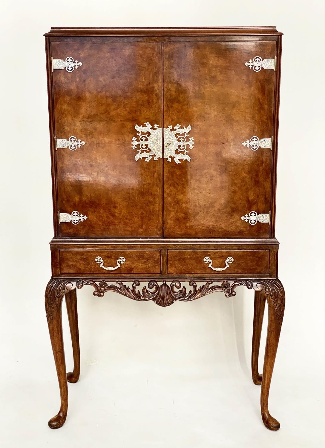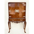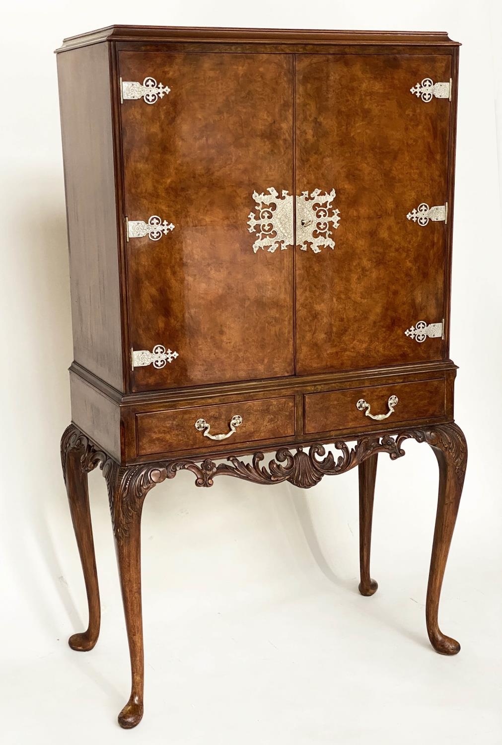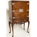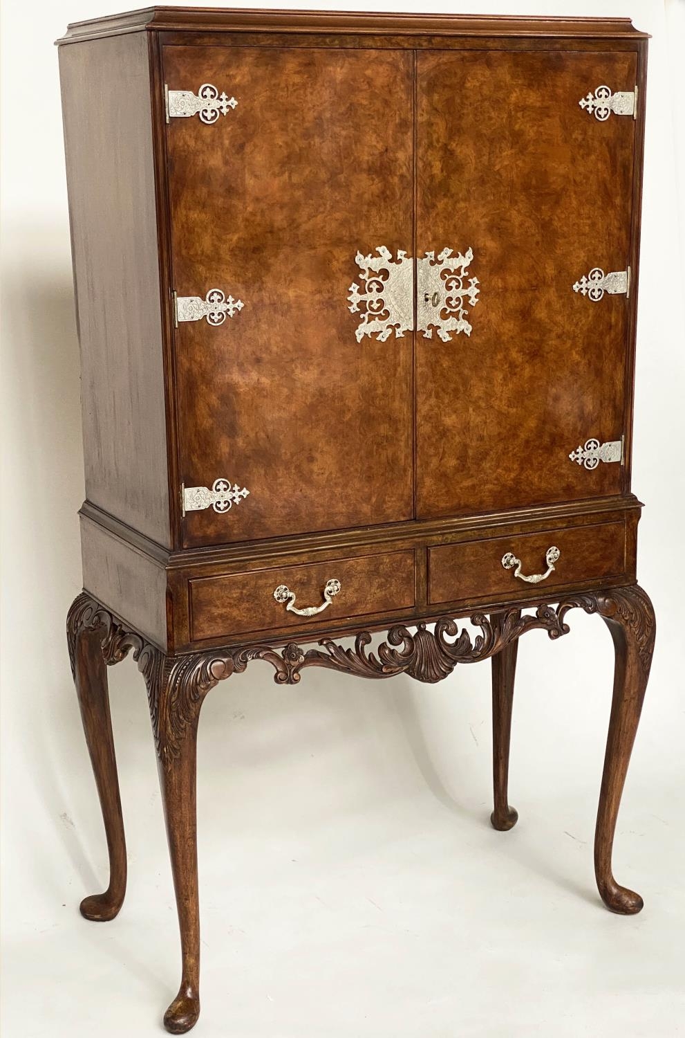COCKTAIL CABINET, Queen Anne style burr walnut and silvered ...