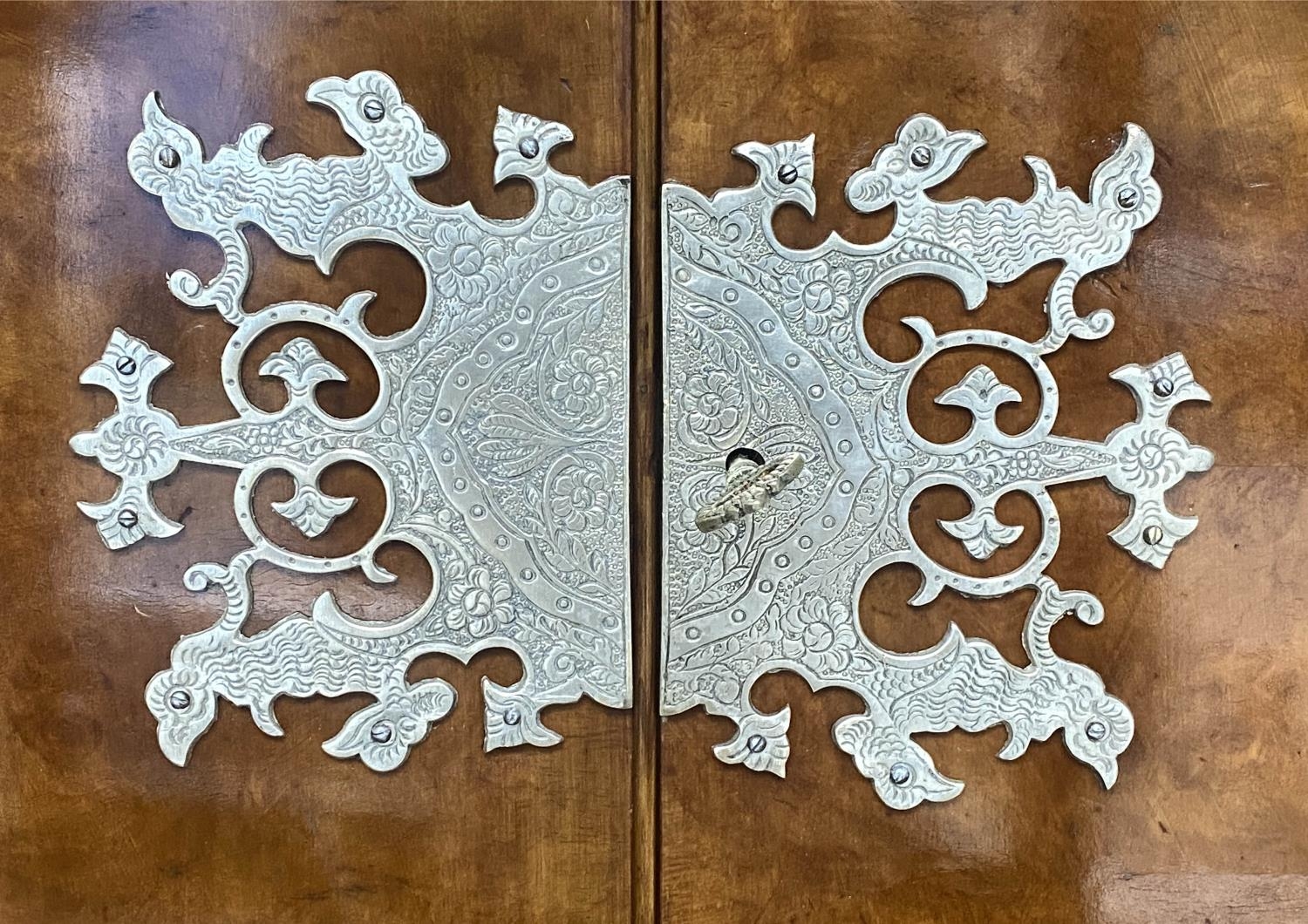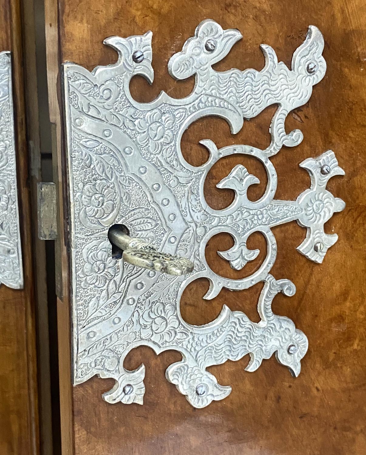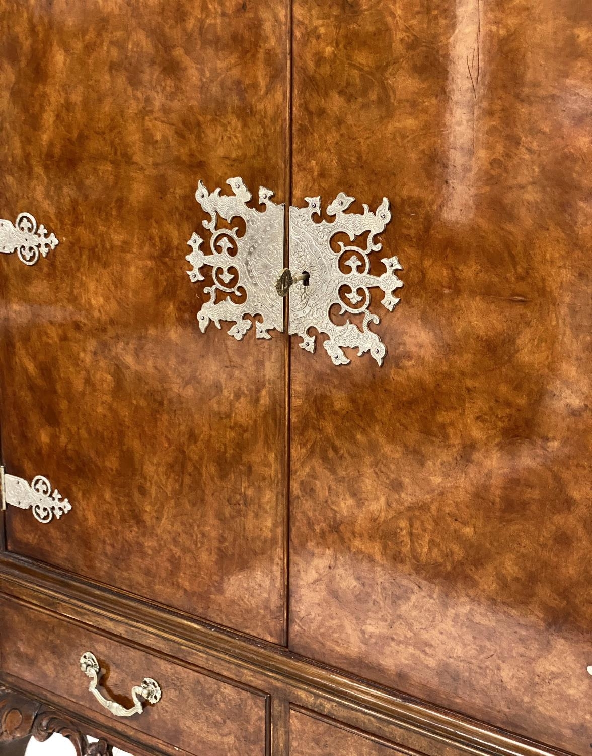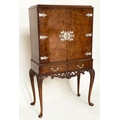 COCKTAIL CABINET, Queen Anne style burr walnut and silvered ...