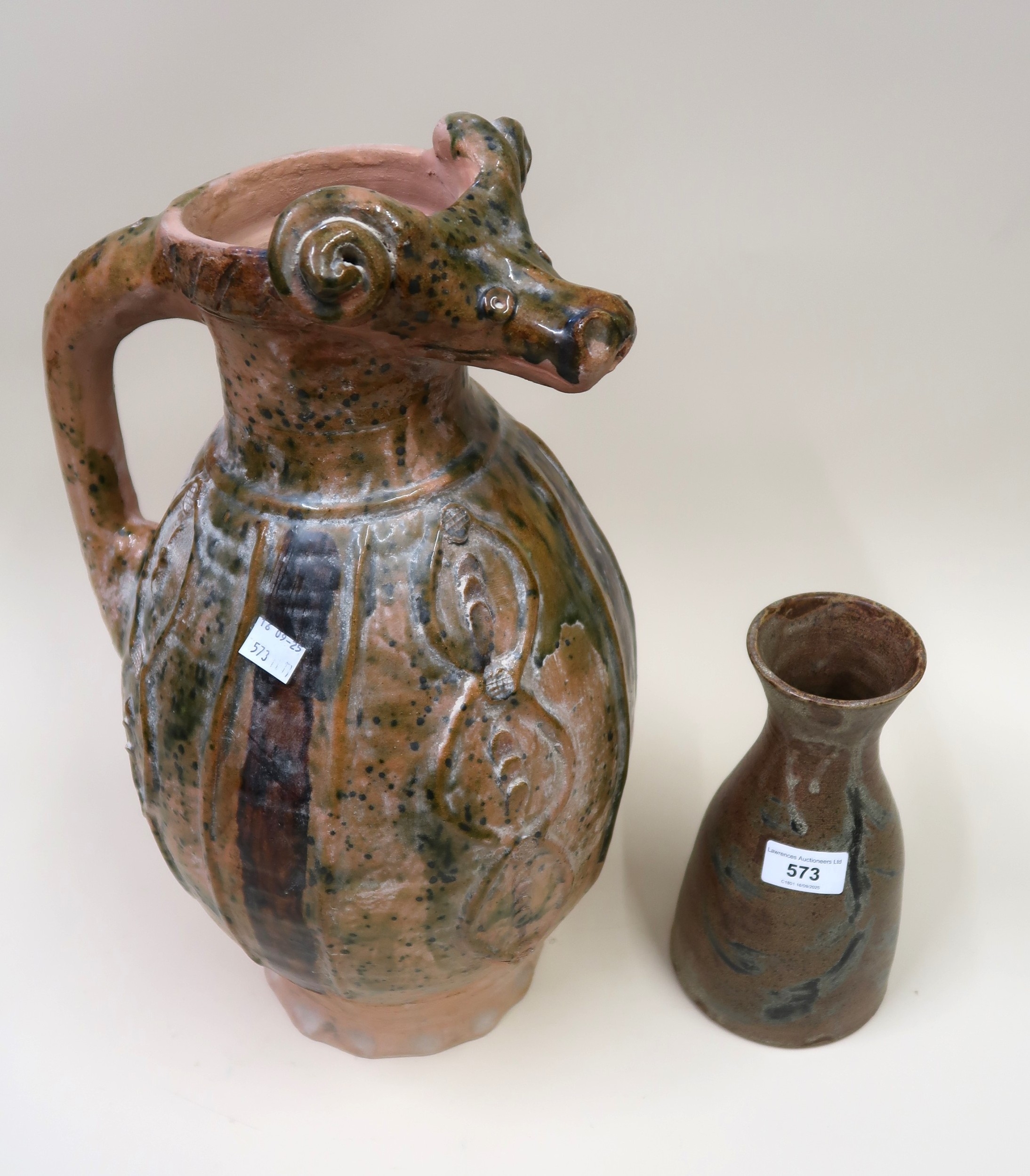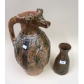 Studio stoneware vase inscribed ' Taylor 1975 ' to the base, together with a large Continental jug vase and four large circular Continental pottery chargers