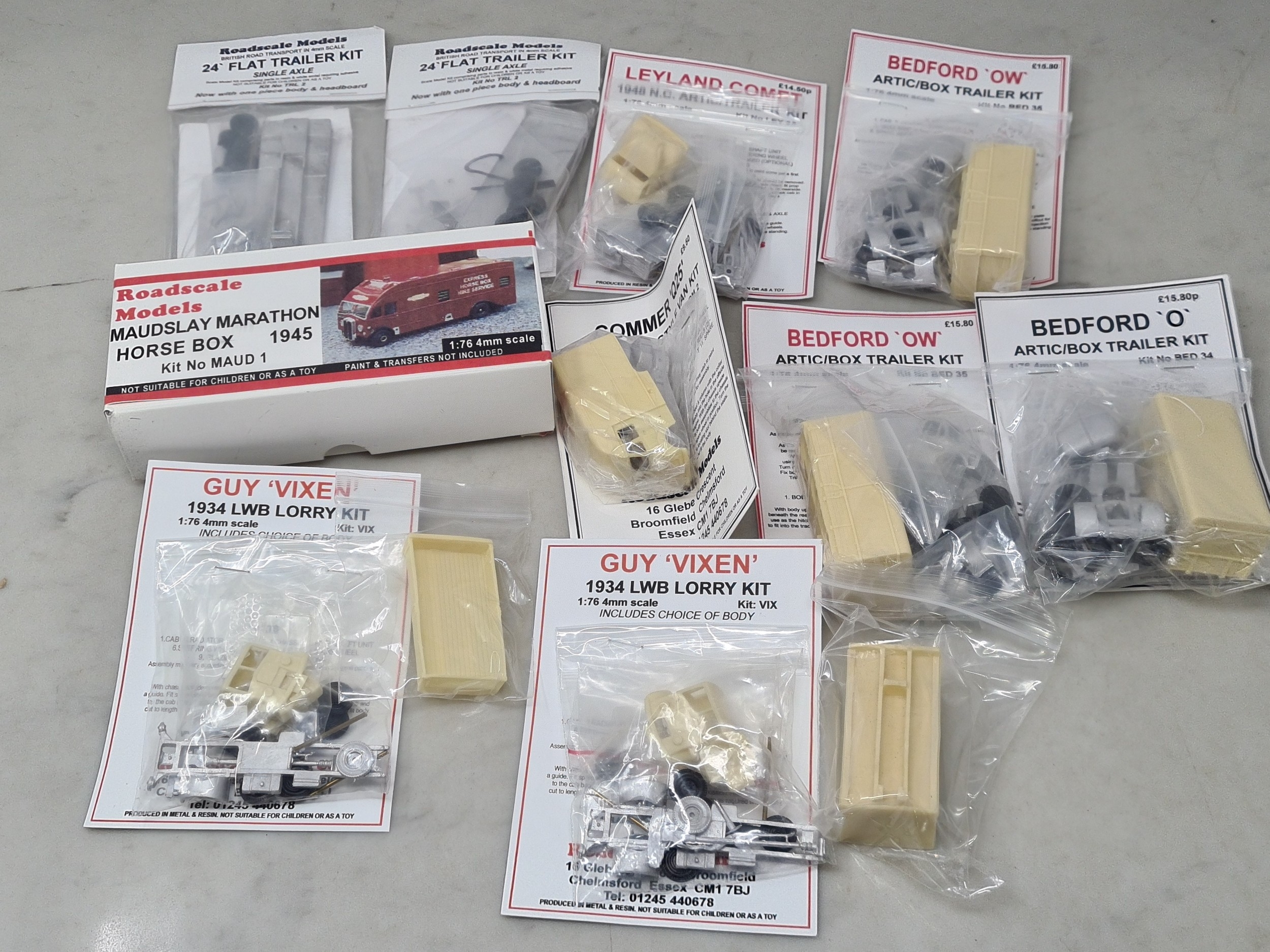 A collection of Roadscale Retired by Brian Latham 1:76 scale white metal and resin Commercial Vehicle Kits, all unbuilt in original packets