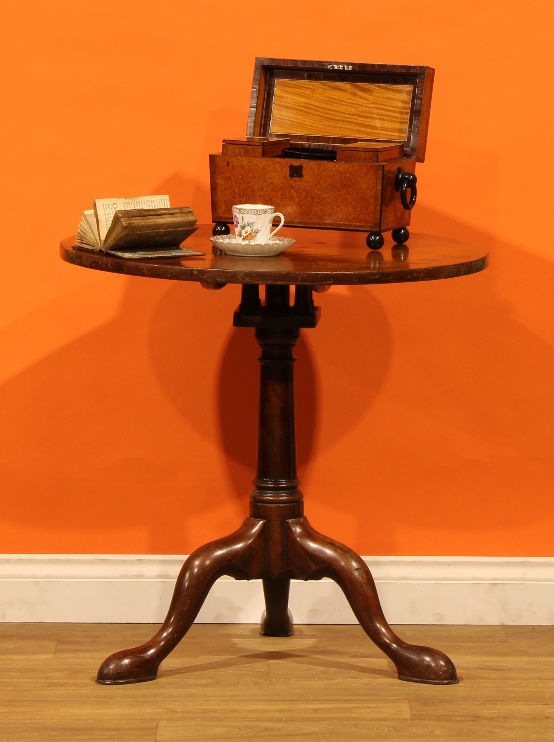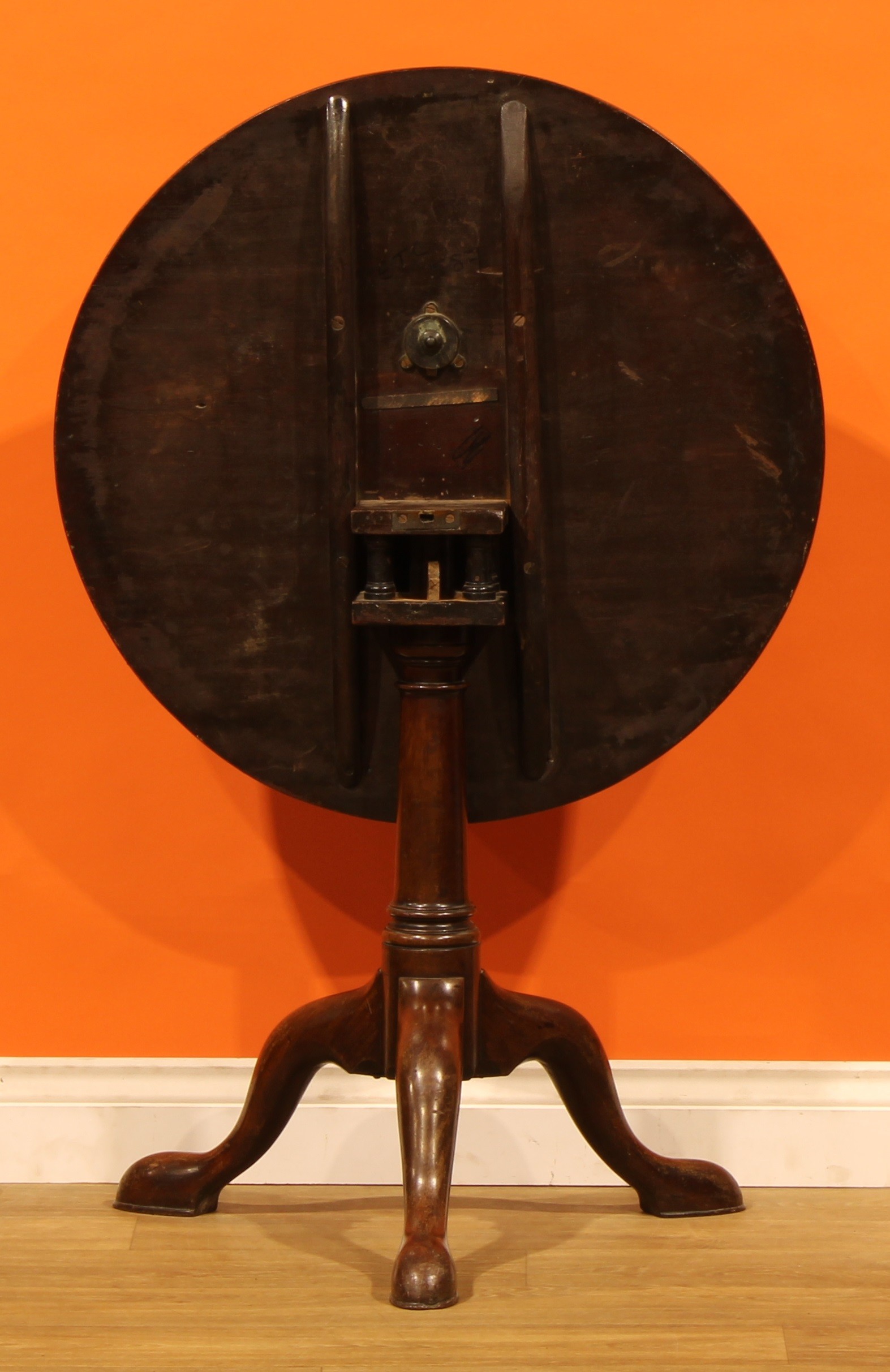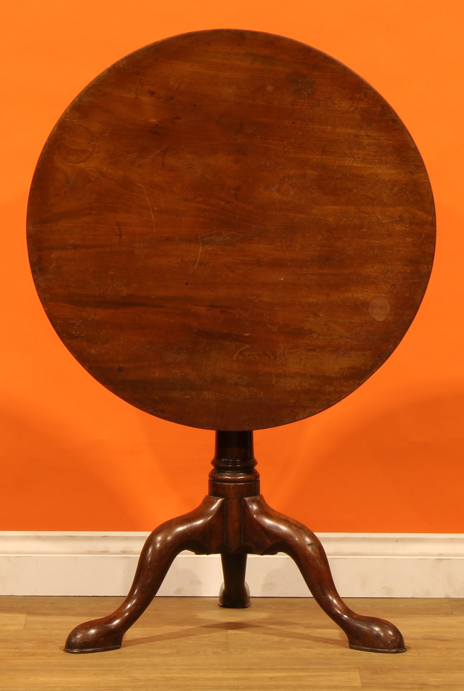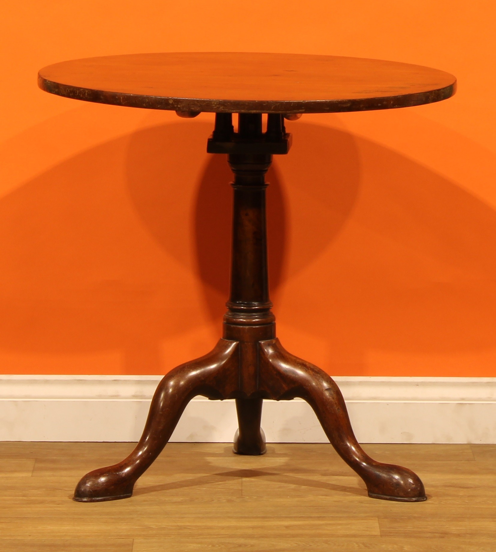 A 19th century mahogany birdcage tripod occasional table, circular tilting top, turned column, cabriole legs, pad feet, 71cm high, 71cm diameter