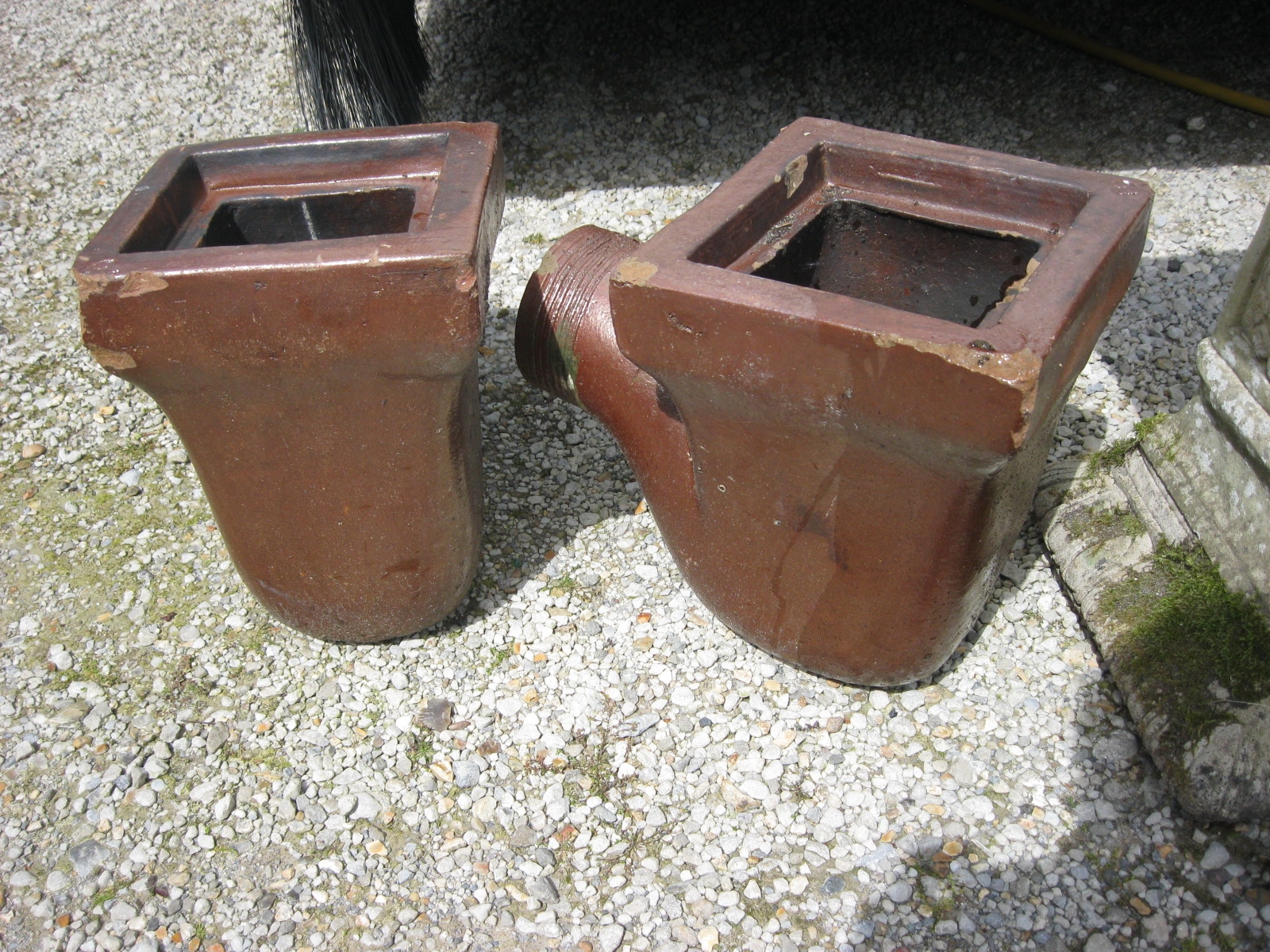 A pair of earthenware drainage fittings ideal as planters