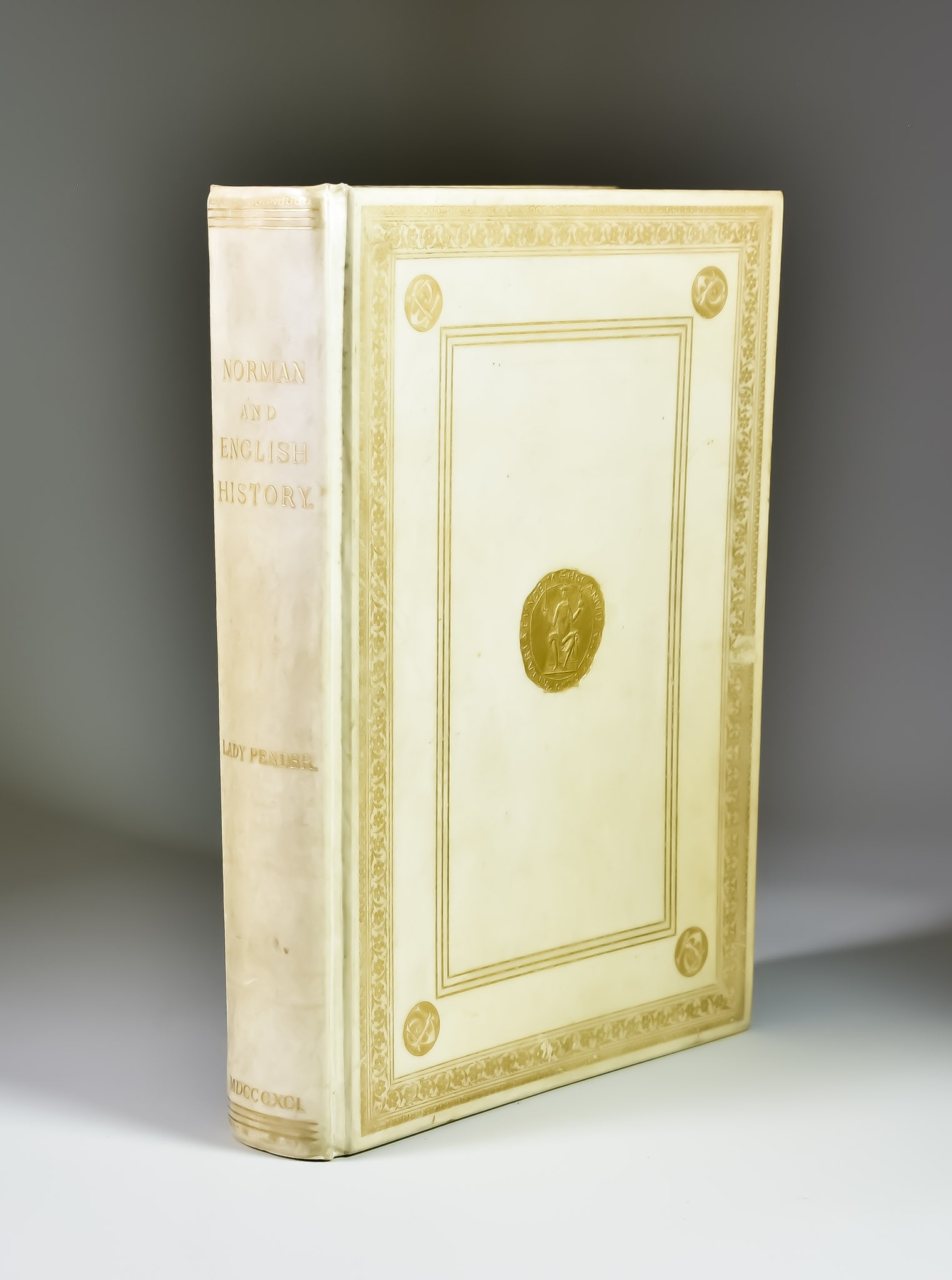 Lady Emma Pender - "Norman and English History During the 11th and 12th Centuries", privately printed by David Douglas, Edinburgh, 1891, illustrations by Keeley Halswelle, limited run of 100 copies of which this is No. 12, in original white cloth and gilt binding