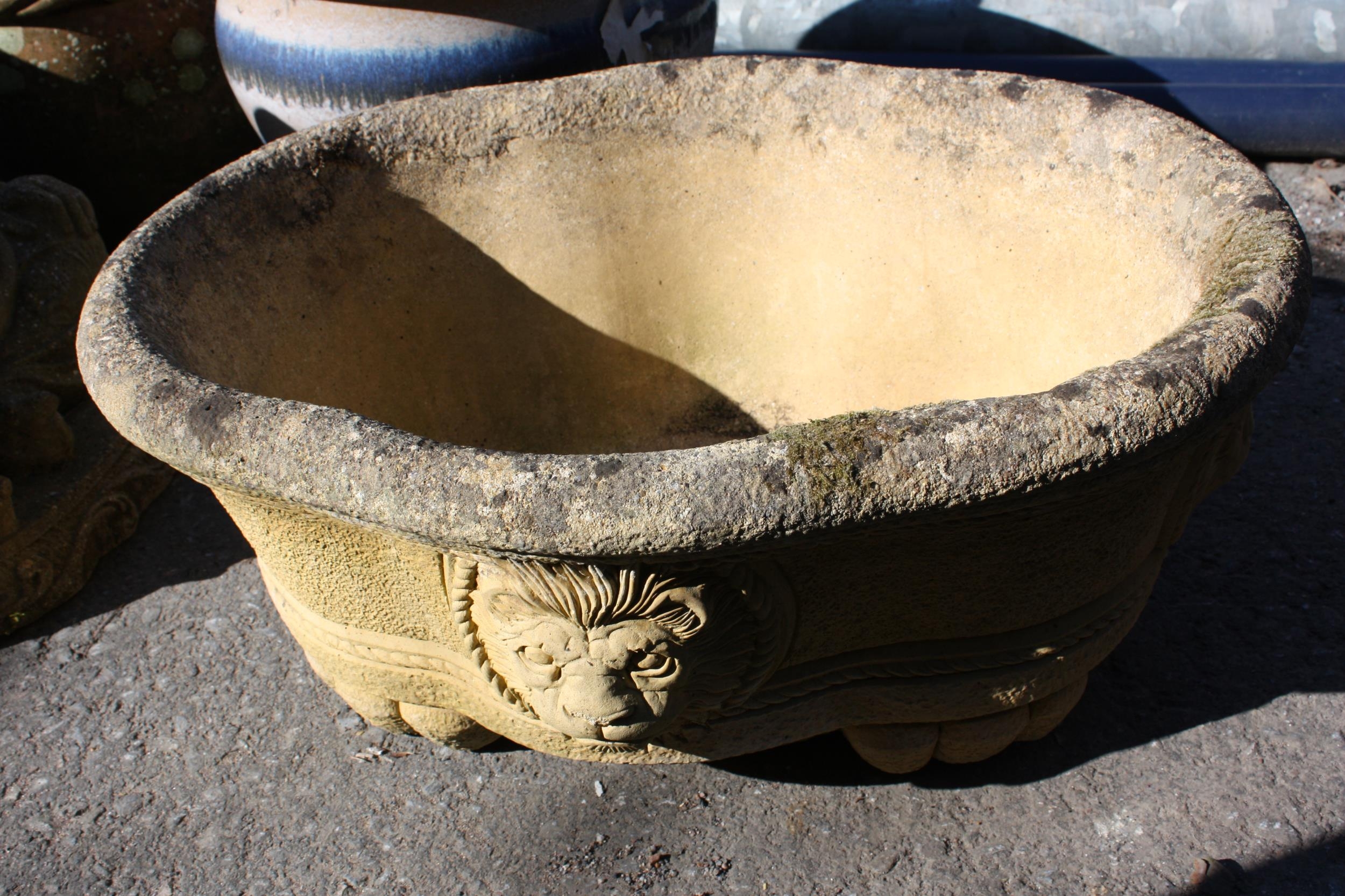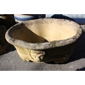Cotswold concrete planter with lions head decoration 9"h x 22" w.