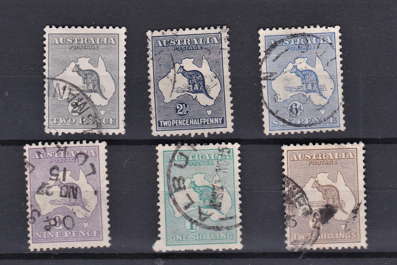 Australia 1915 set of 6 Roo's to 2/-, Fine used