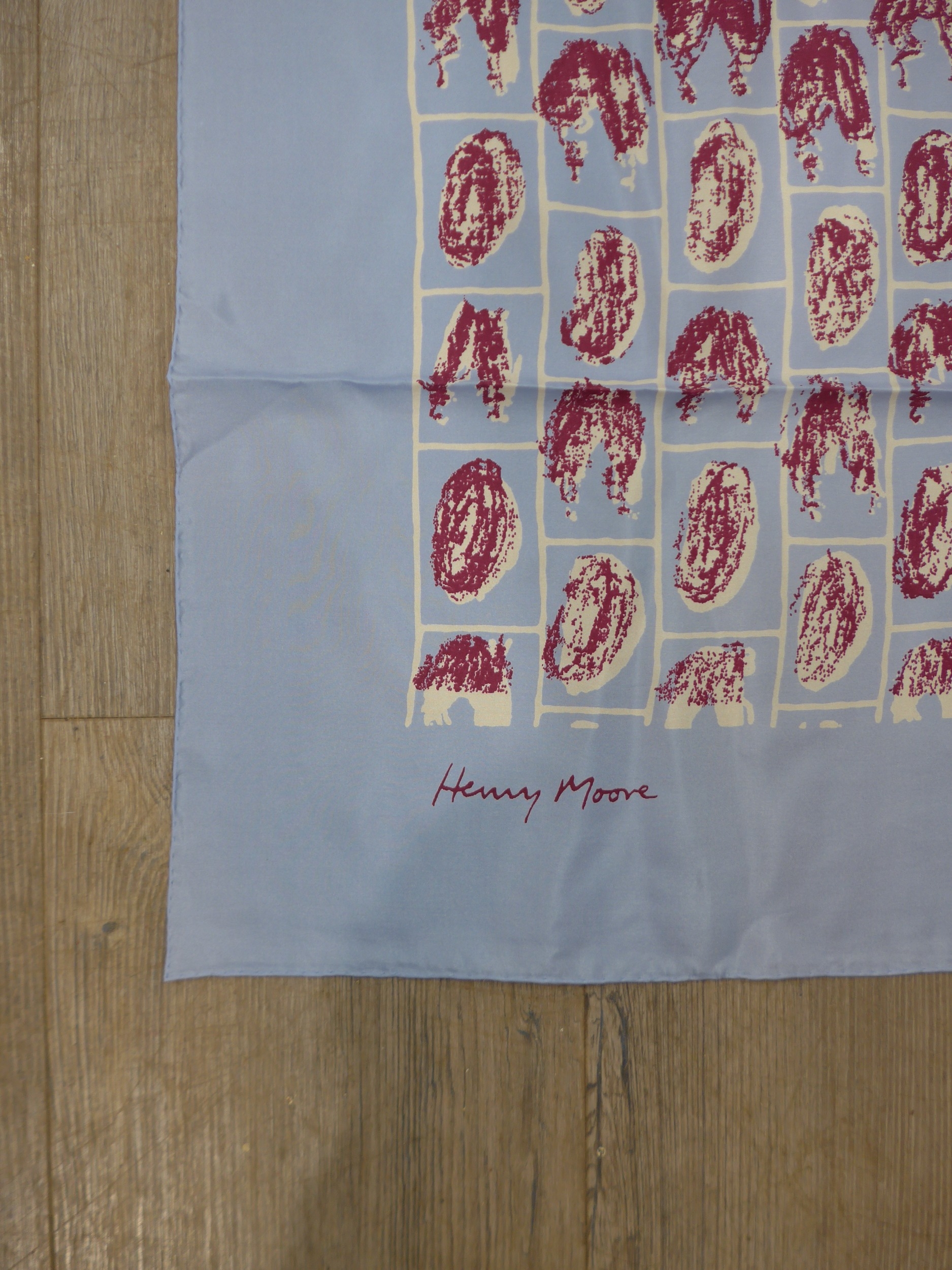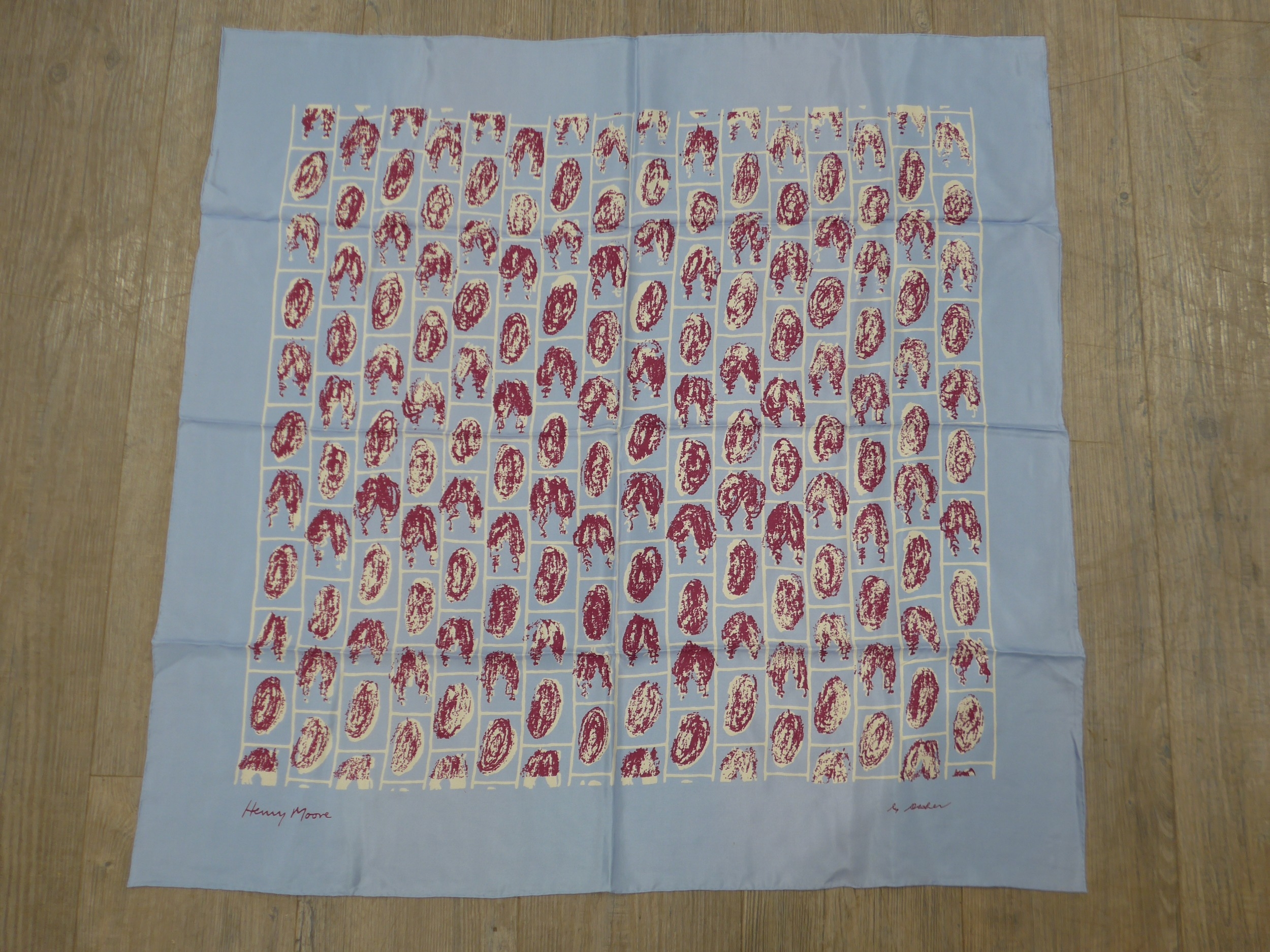 A Henry Moore vintage artist designed silk scarf, signed in print with label. 84cm x 85cm