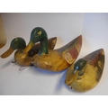 A set of three graduated carved wooden and polychrome decorated Mallard duck decoys: 34cm, 32cm, 29cm long. (3)
