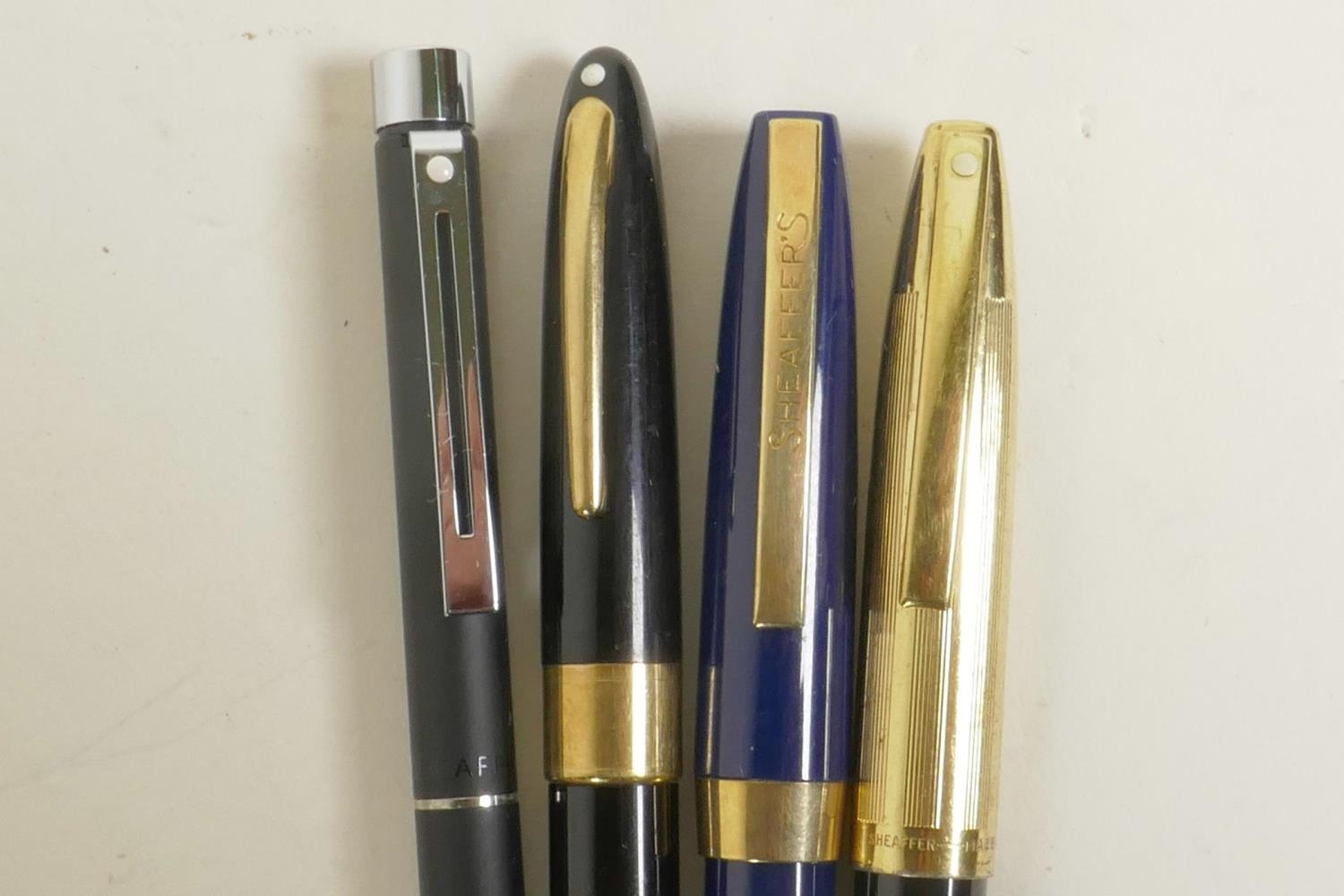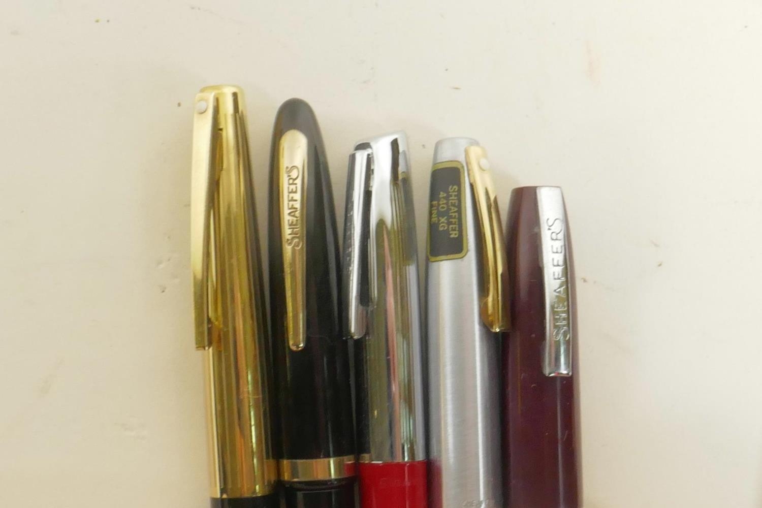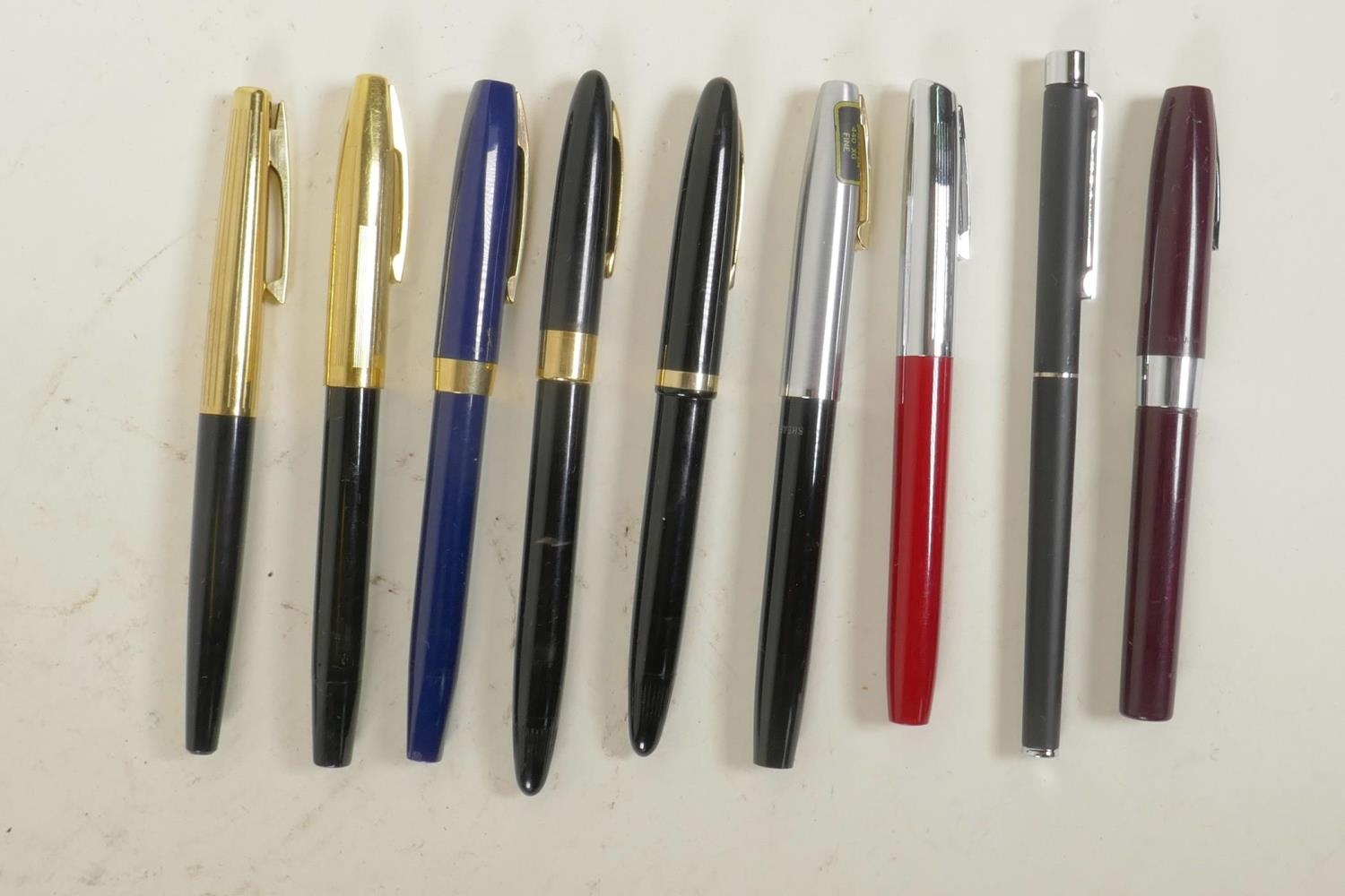 Nine assorted Sheaffer fountain pens, some with 14ct gold nibs