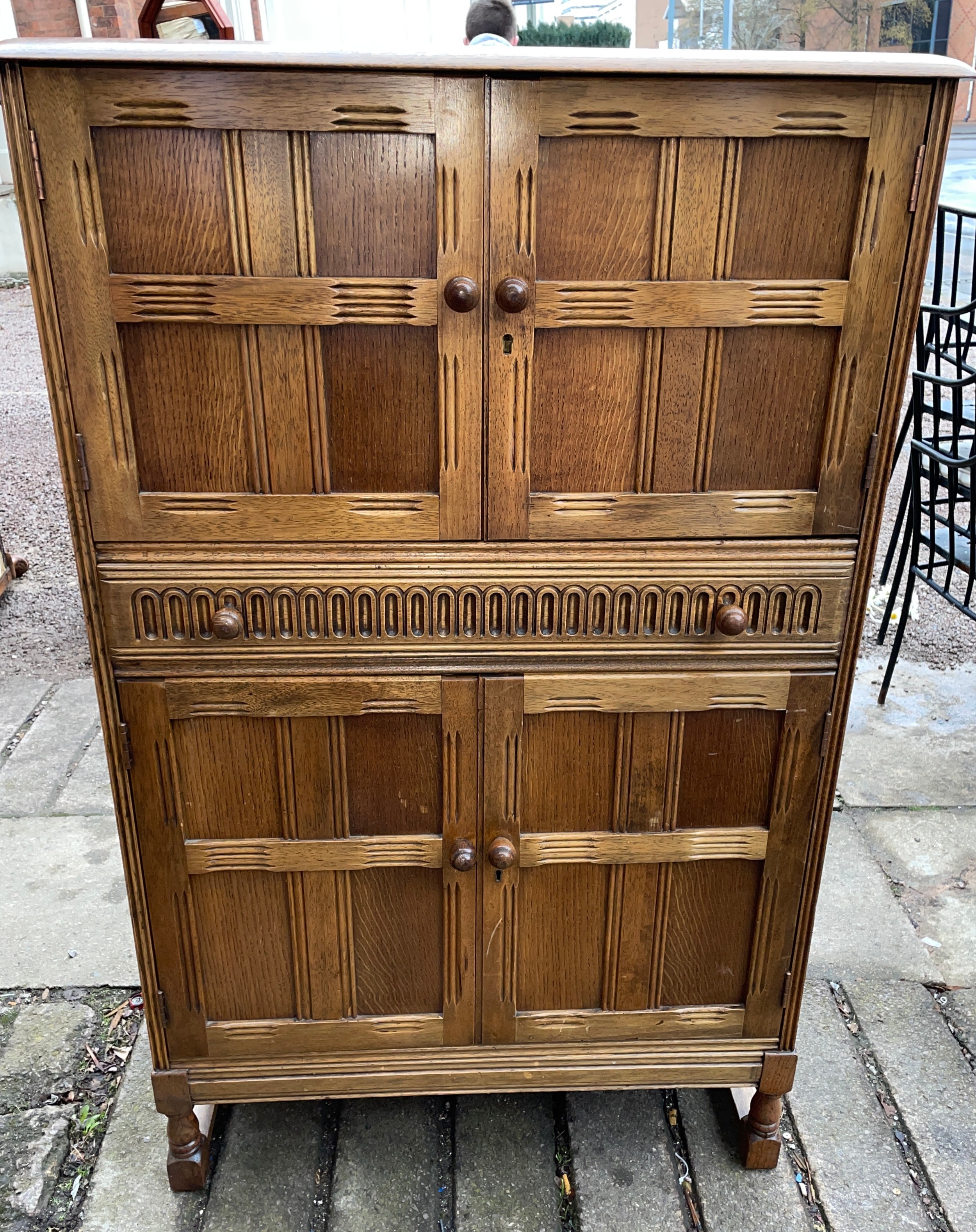 PRIORY STYLE OAK DRINKS CABINET WITH LATTICE PANEL DOORS