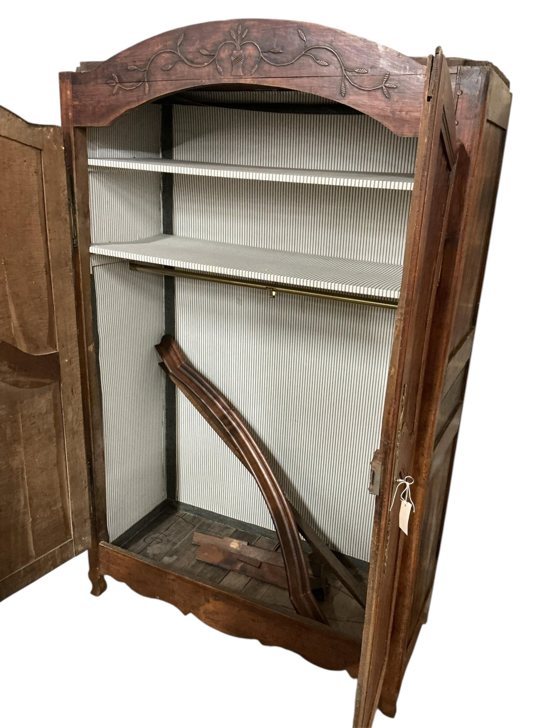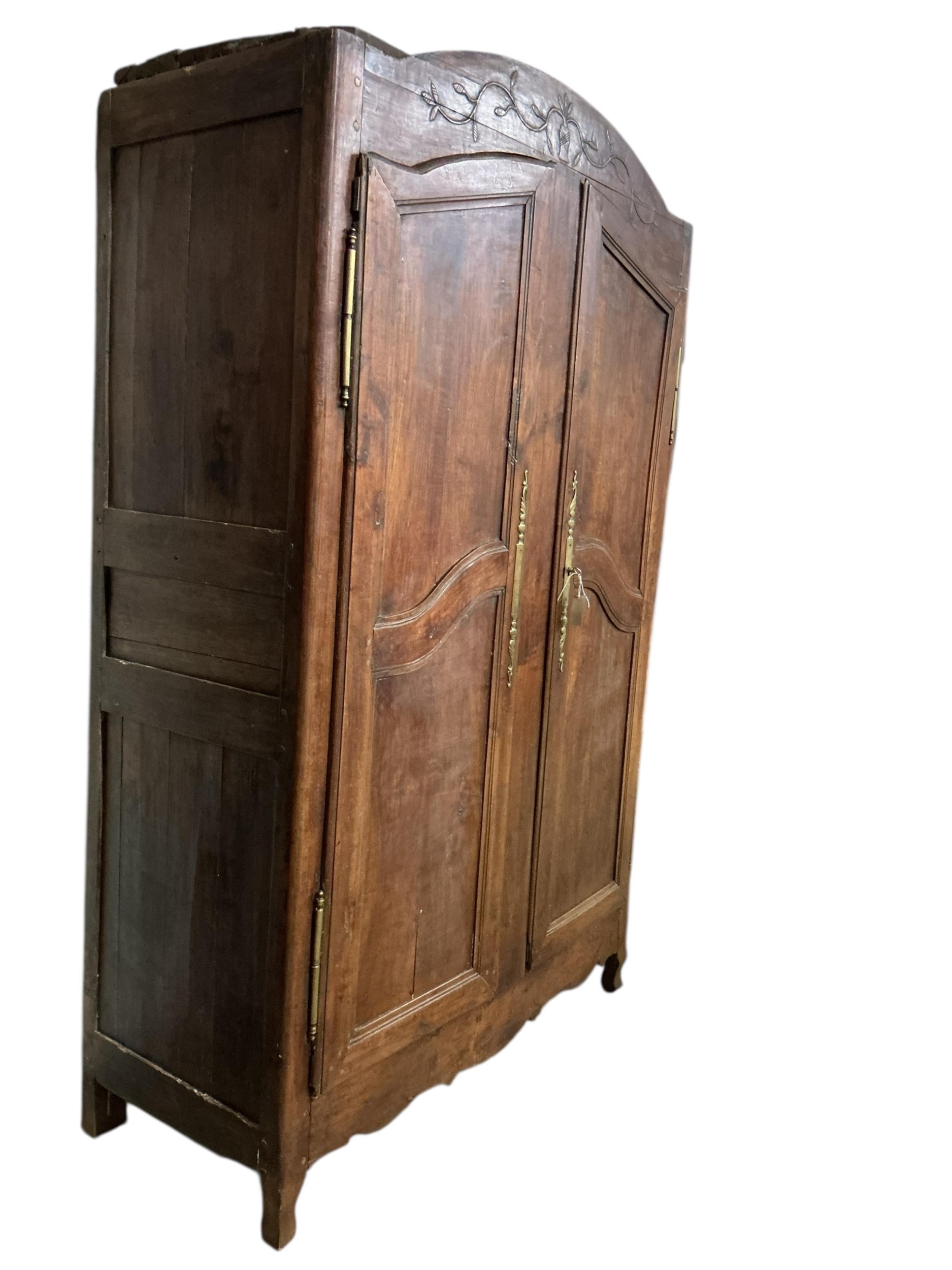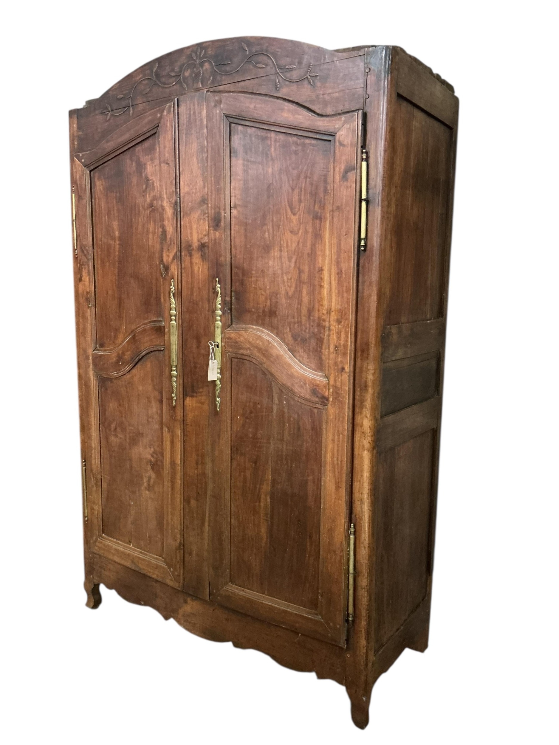 An early 19th century French brass mounted fruitwood armoire, width 132cm, depth 60cm, height 219cm