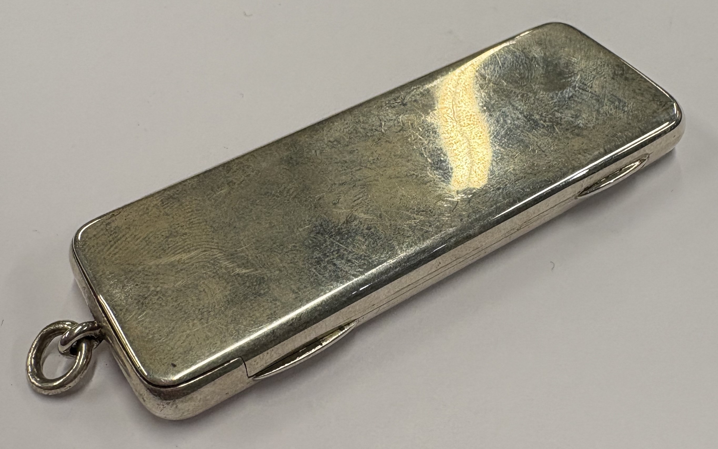 An early 20th Century English silver sovereign holder. Approx. 57 grams. Est. £200 - £300.