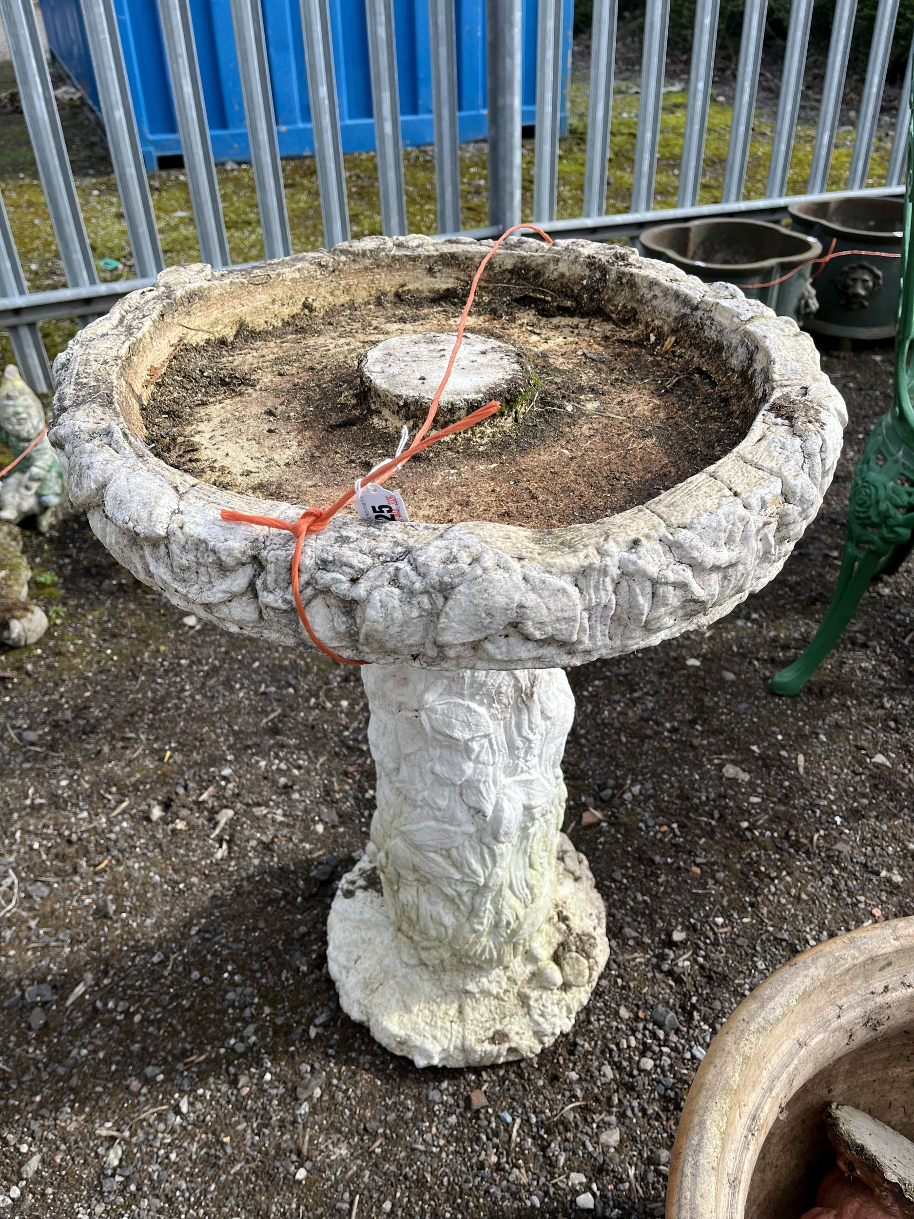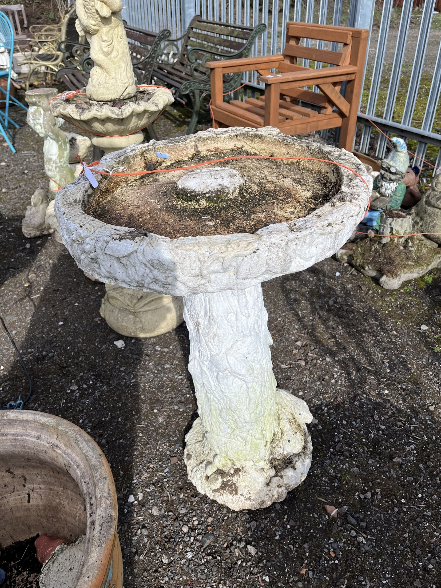 A CONCRETE BIRD BATH in the form of a tree stump, surrounded by small animals, height 72cm. Condition Report: no obvious damage