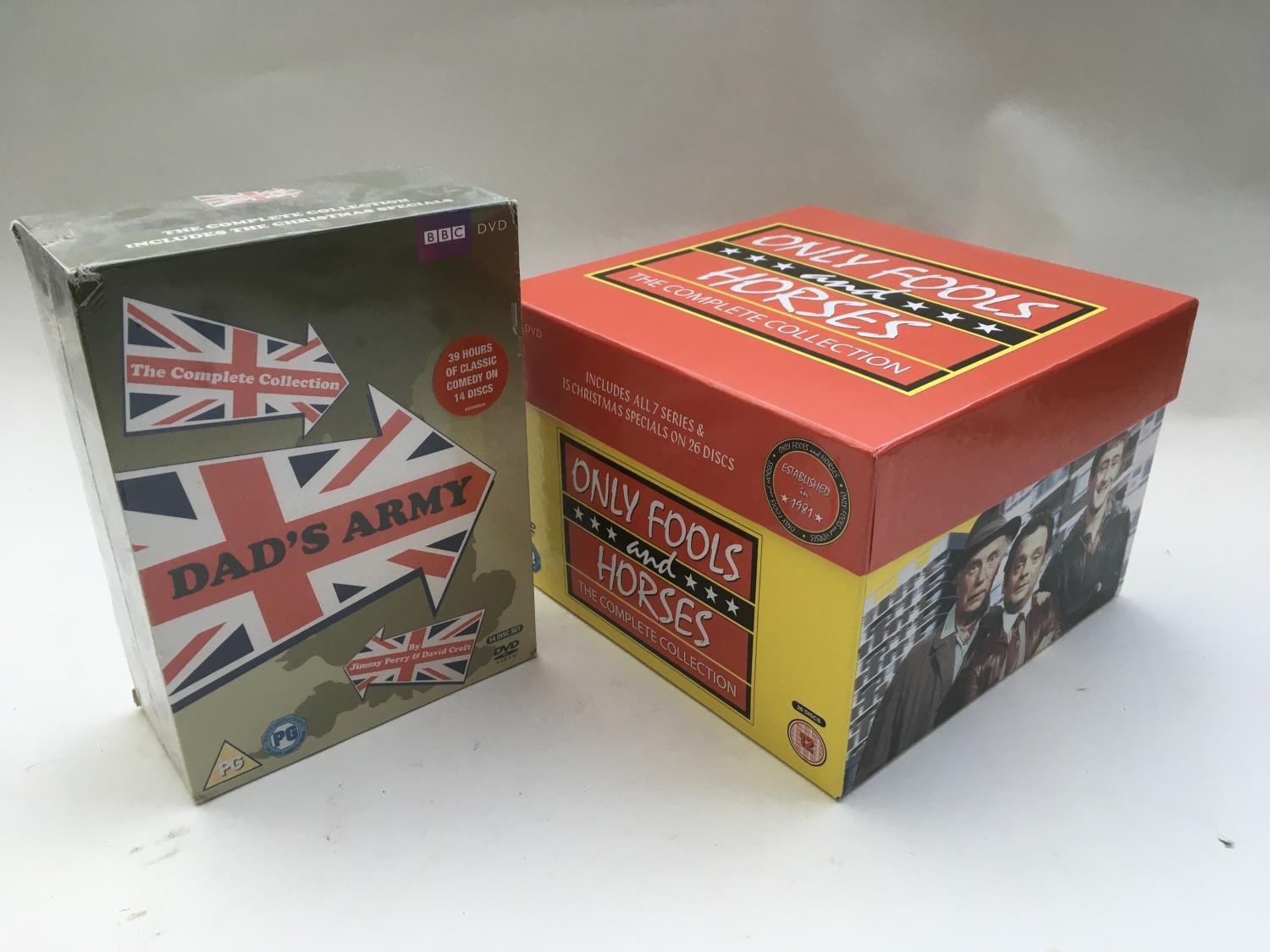 An Only Fools And Horses DVD box set, a sealed Dad's Army DVD box set and a small selection of CDs.