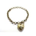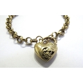 A gold belcher chain bracelet, one link marked 375, 19cm long with a 9ct gold pierced heart shaped padlock, 10.7g