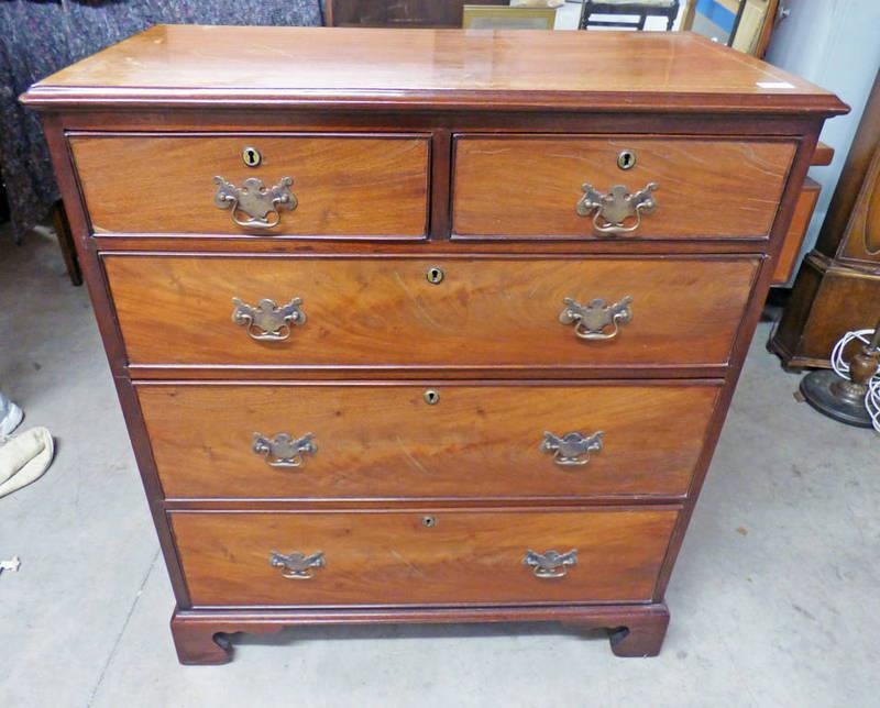 19TH CENTURY MAHOGANY CHEST OF 2 SHORT OVER 3 LONG DRAWERS ON BRACKET SUPPORTS, 95CM WIDE