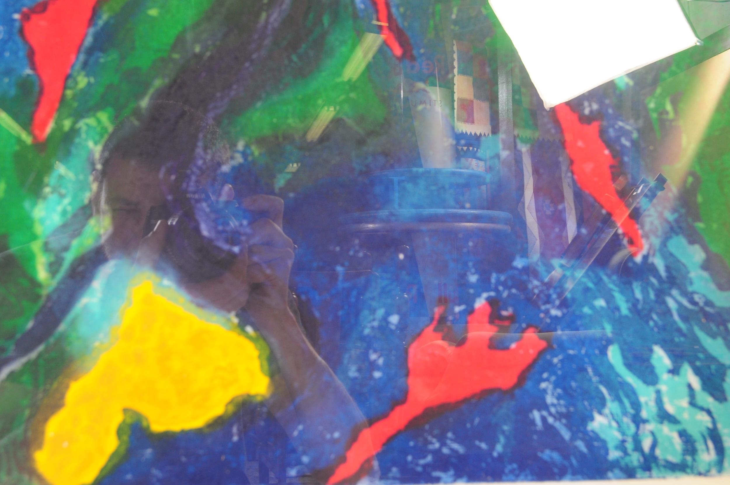 John Hubbard (1931 - 2017) - A late 20th century abstract signed print. Titled 'Water Garden'. 32/100. Measures approx. 83cm x 63cm. Framed and glazed.