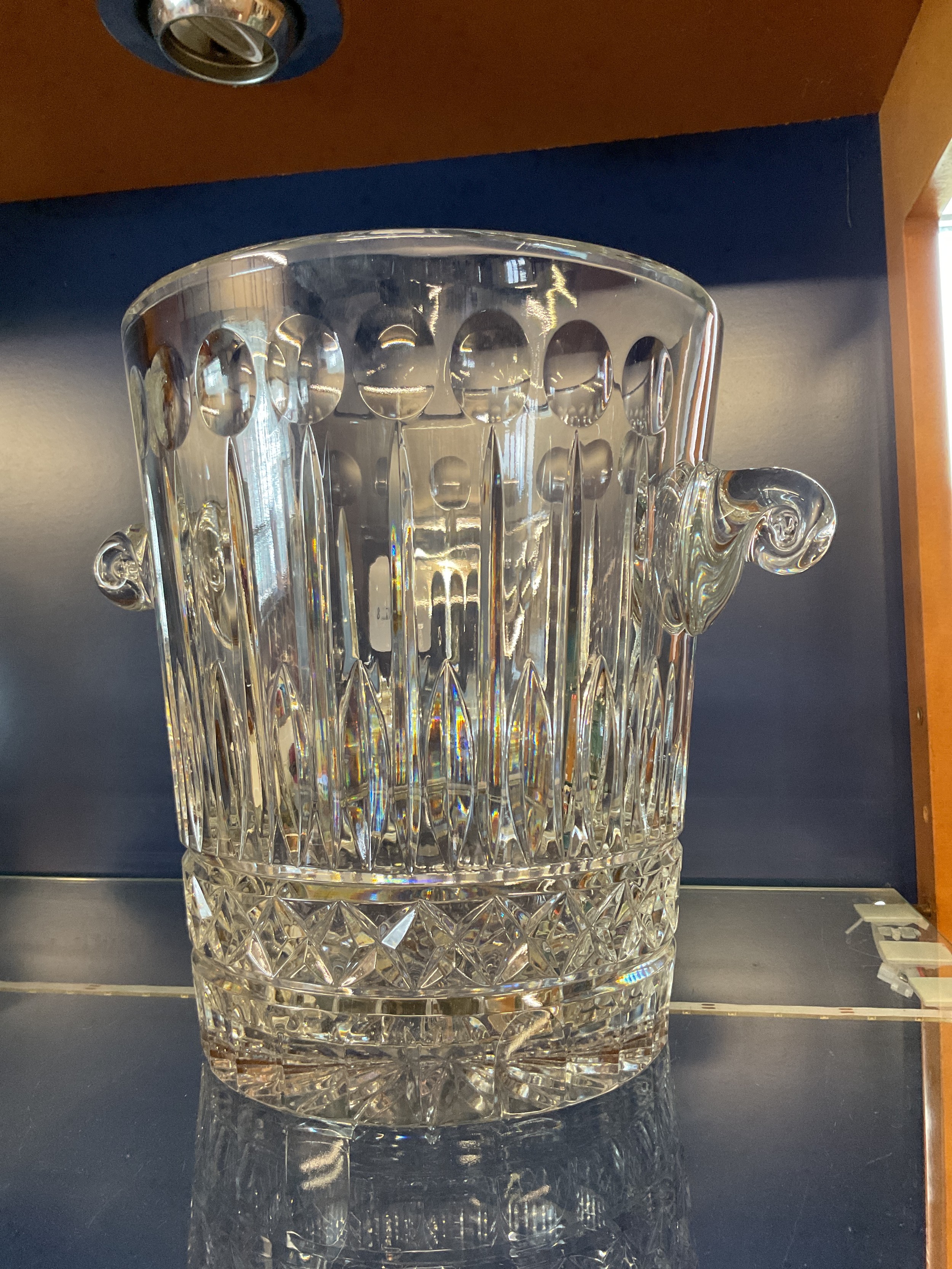 A vintage lead crystal cut glass large champagne ice bucket 9 1/2" high (small chip base)