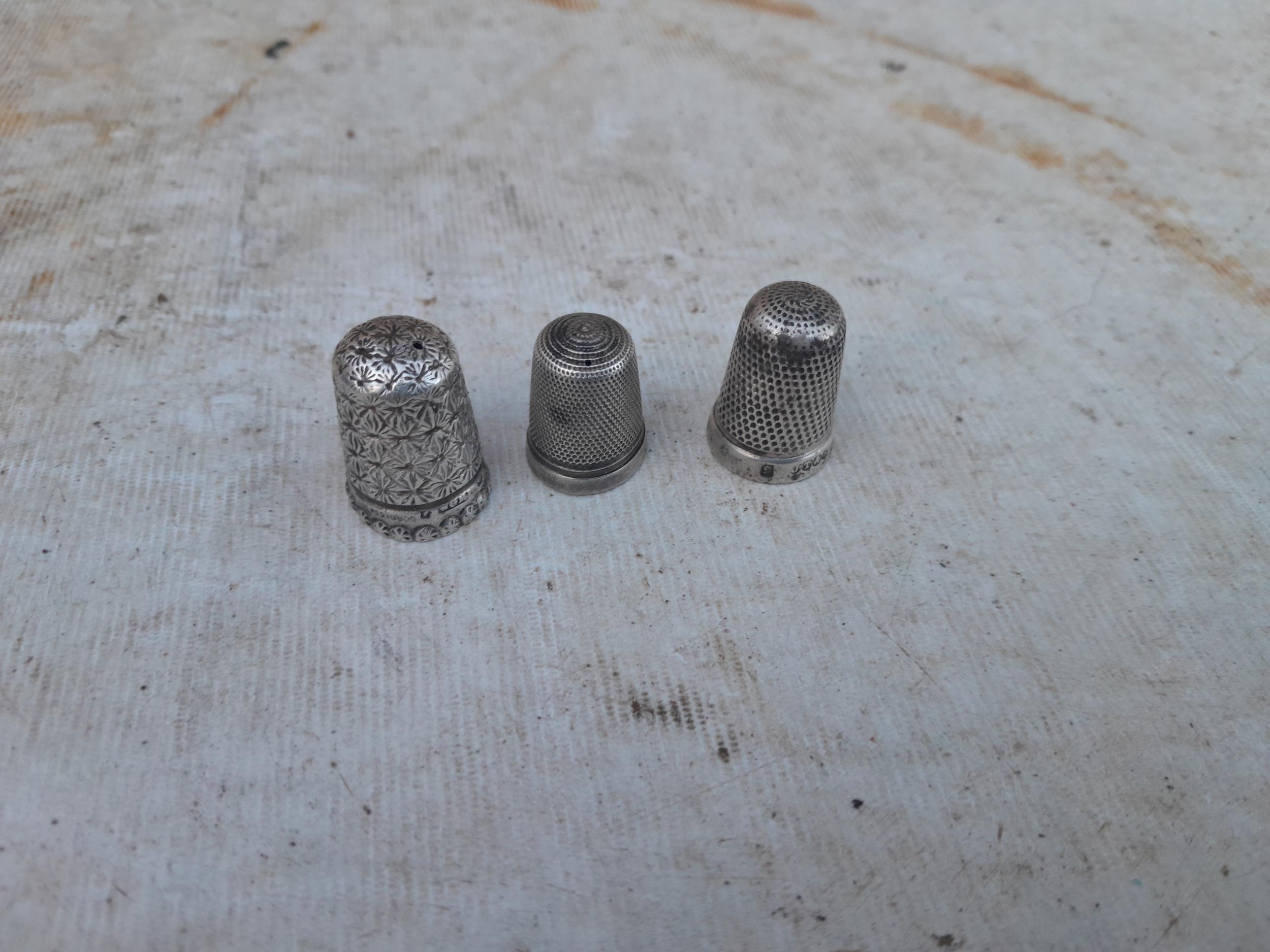 3 x silver thimbles