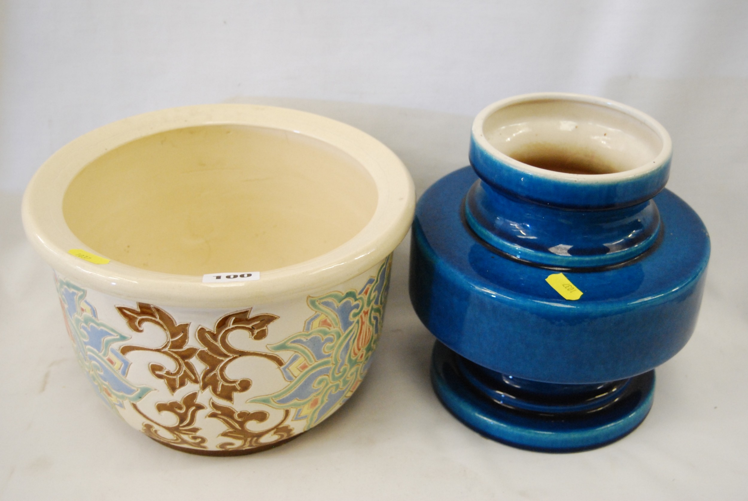 DECORATIVE JARDINIERE & BLUE CHINA VASE