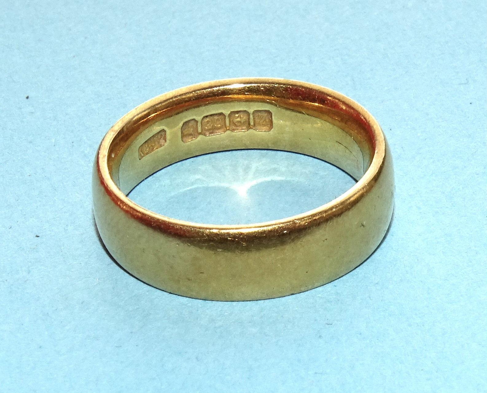 A 22ct gold wedding band, size I½, 7.2g.