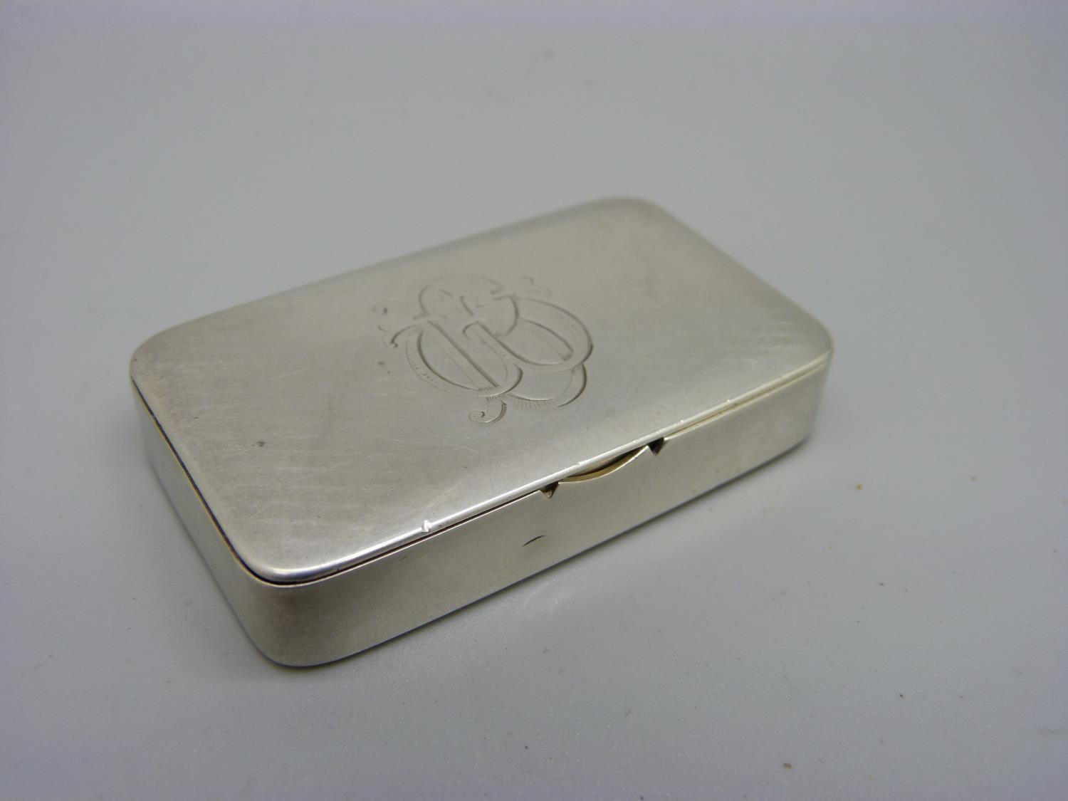 A Victorian silver snuff box, Sampson Mordan, London 1891, with monogram, 53g