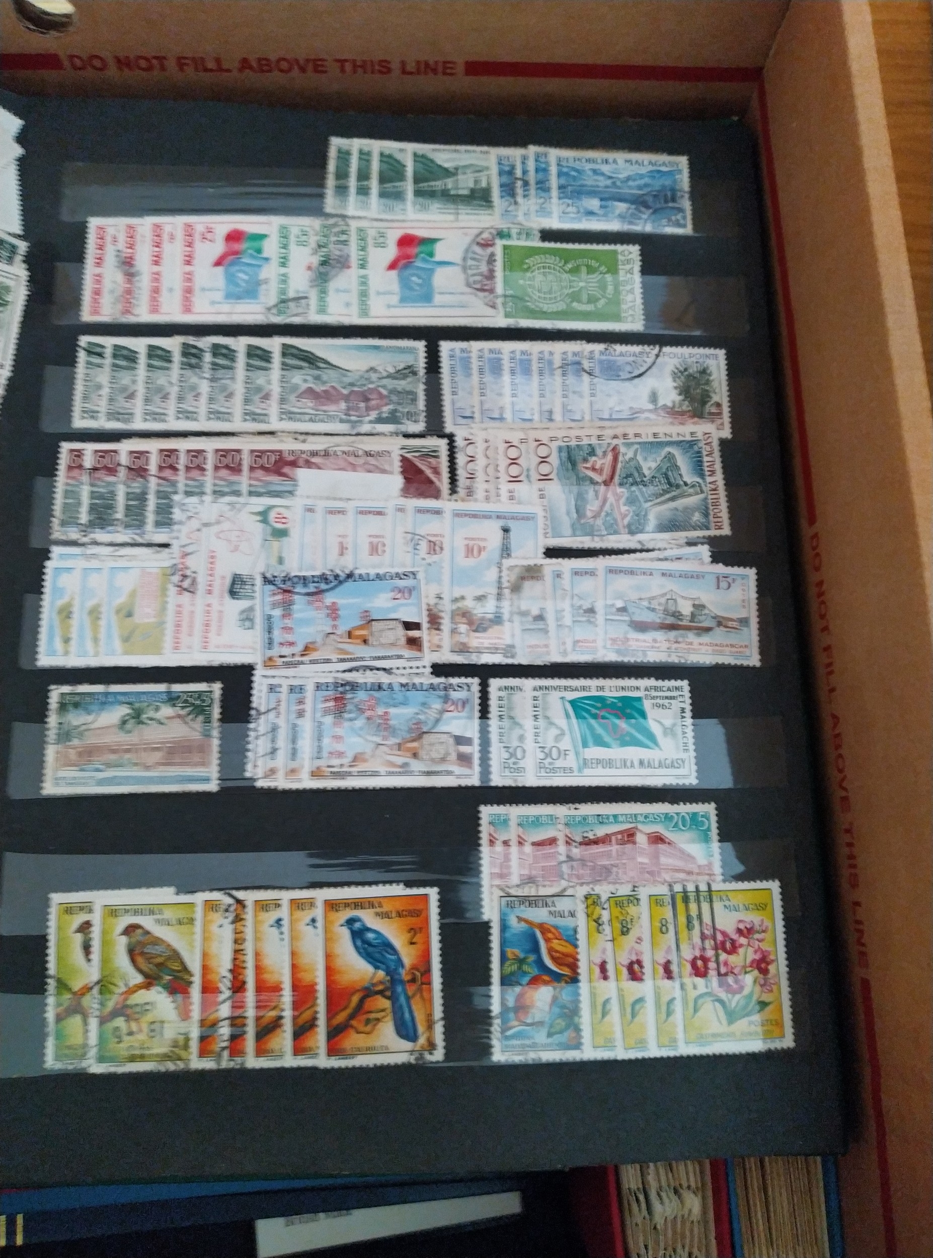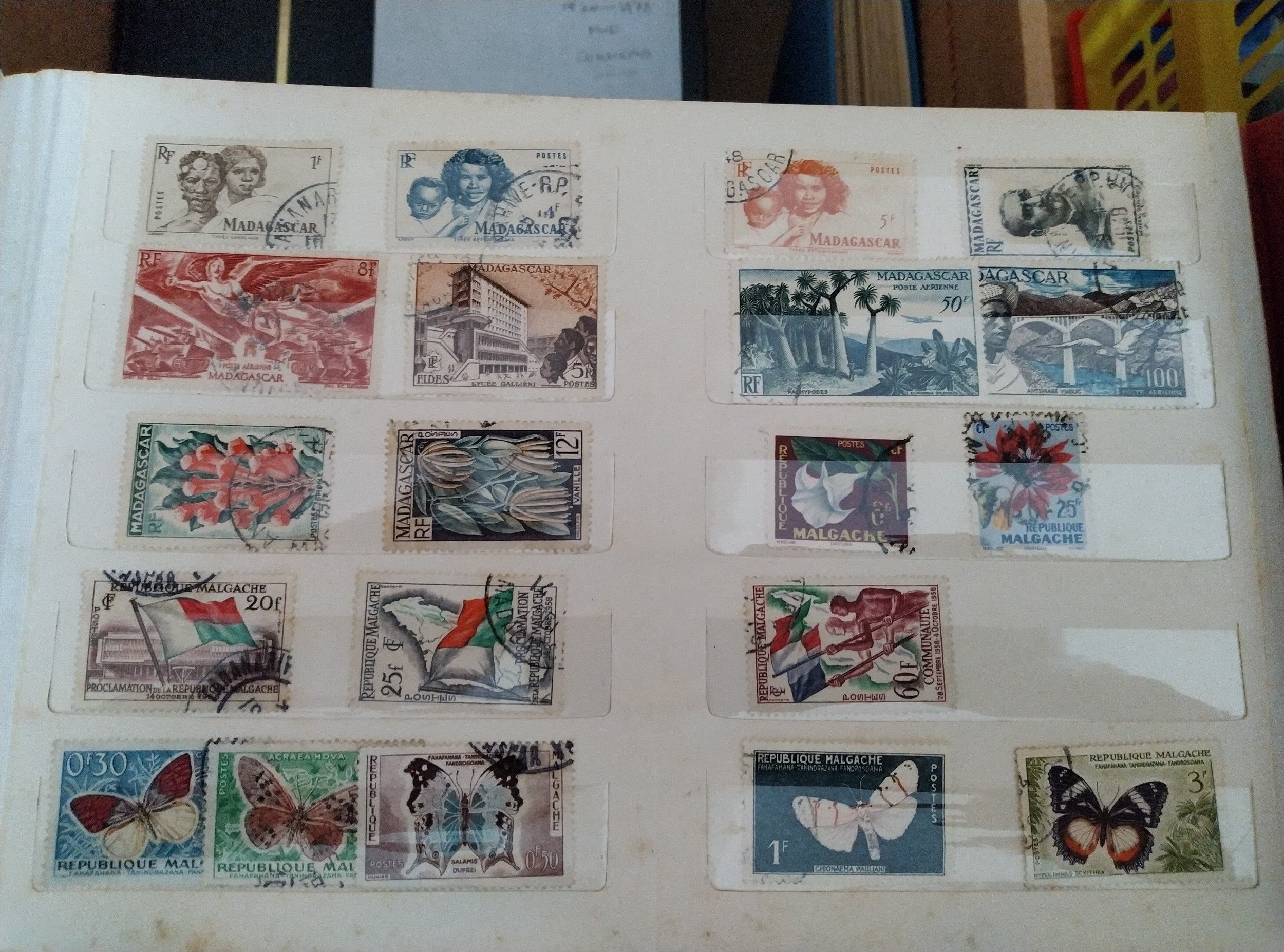 A most interesting lot in a carton 10 Stockbooks and 1 Binder with Vietnam (South) Postal used 1960's, Philippines 1970's sets UM Inc. Blocks, Malagsy and French Cols. Postal used Frama Labels Collection, Covers including bisects and lots more. Slightly more unusual material. (Several 1000's).