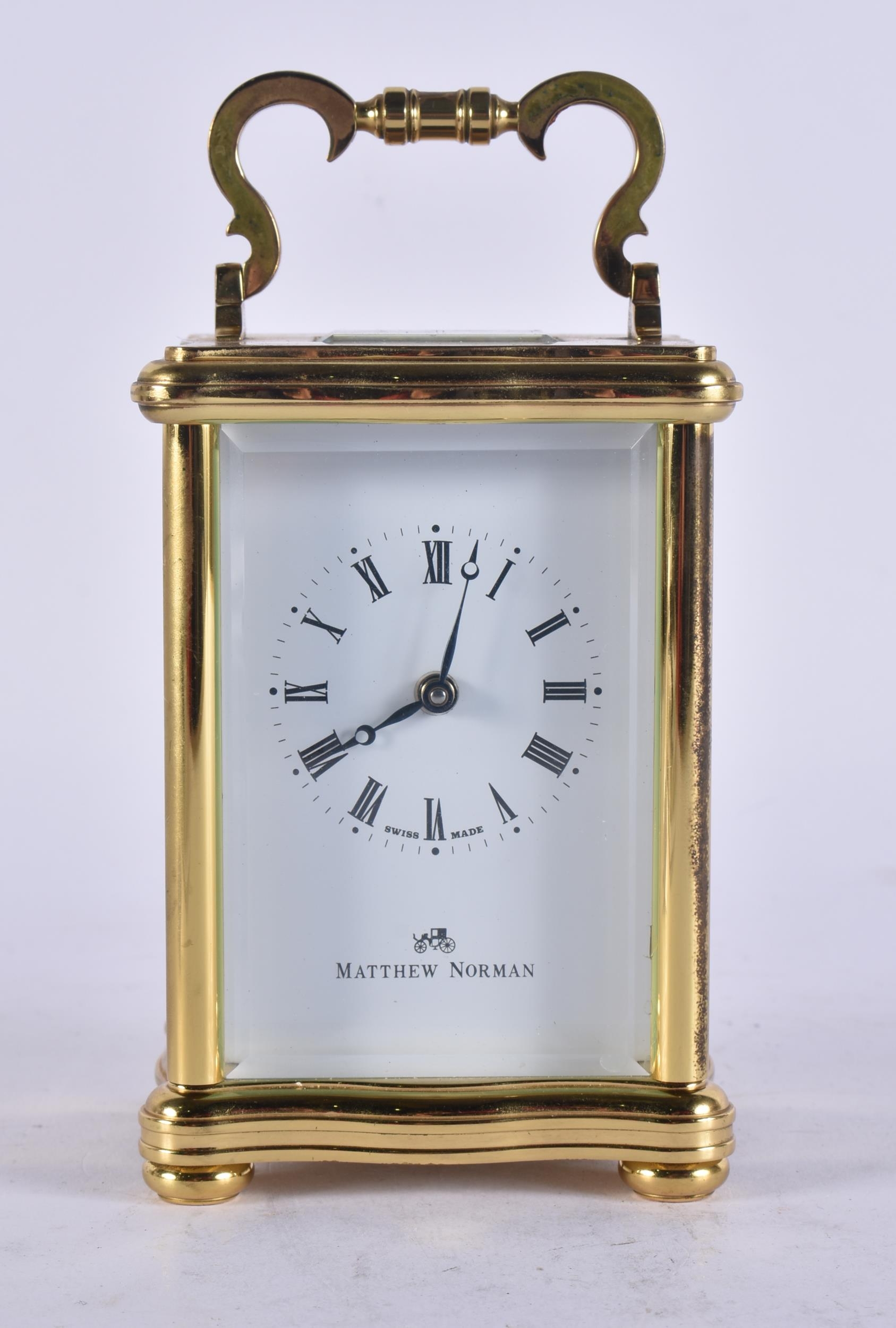 A MATTHEW NORMAN CARRIAGE CLOCK. Working. 14 cm high inc han...