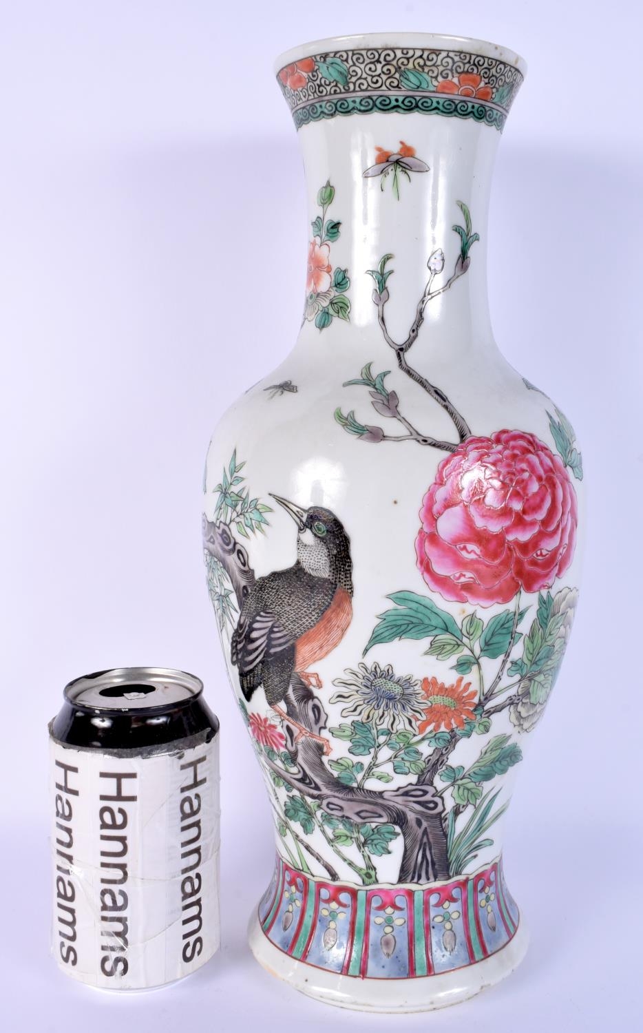 A LARGE 19TH CENTURY CHINESE FAMILLE ROSE BALUSTER VASE Guangxu, painted with birds and foliage. 35 cm x 11 cm.