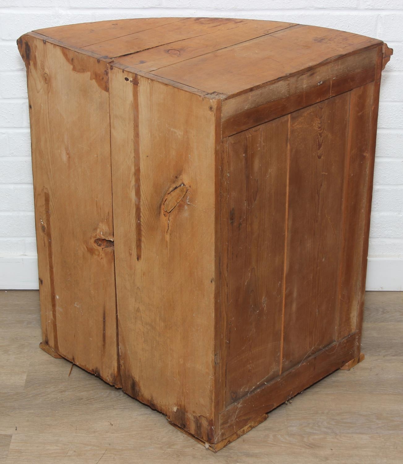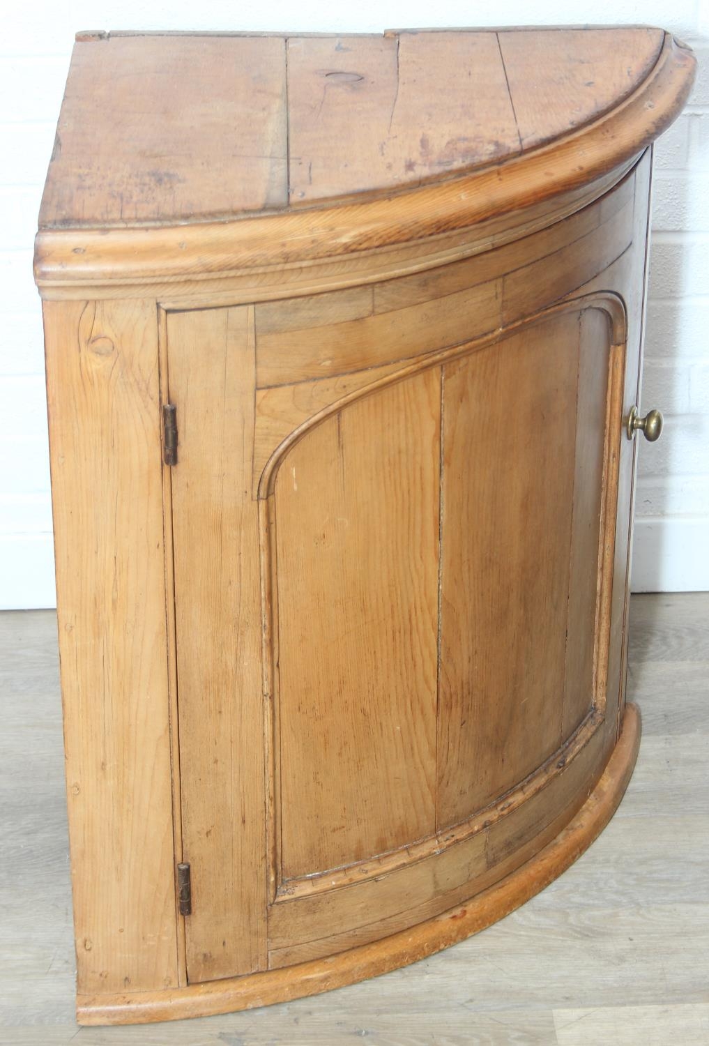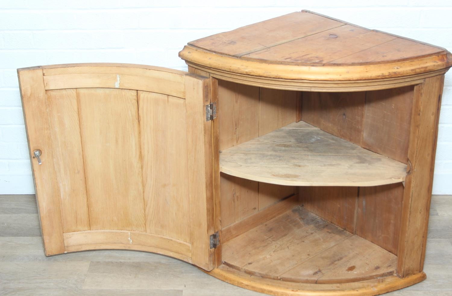 Antique pine quarter circle floor standing corner cupboard, 81cm x 56cm x 77cm