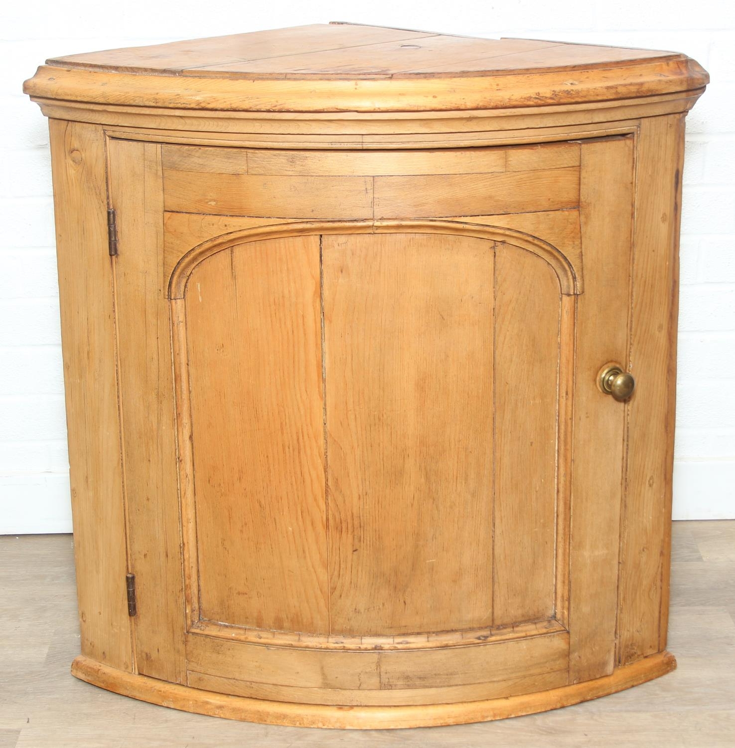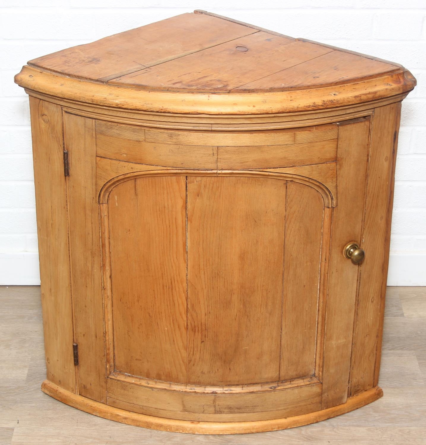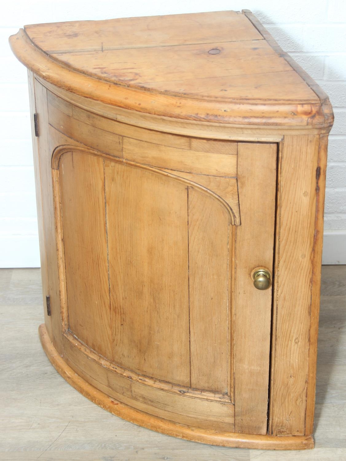 Antique pine quarter circle floor standing corner cupboard, 81cm x 56cm x 77cm