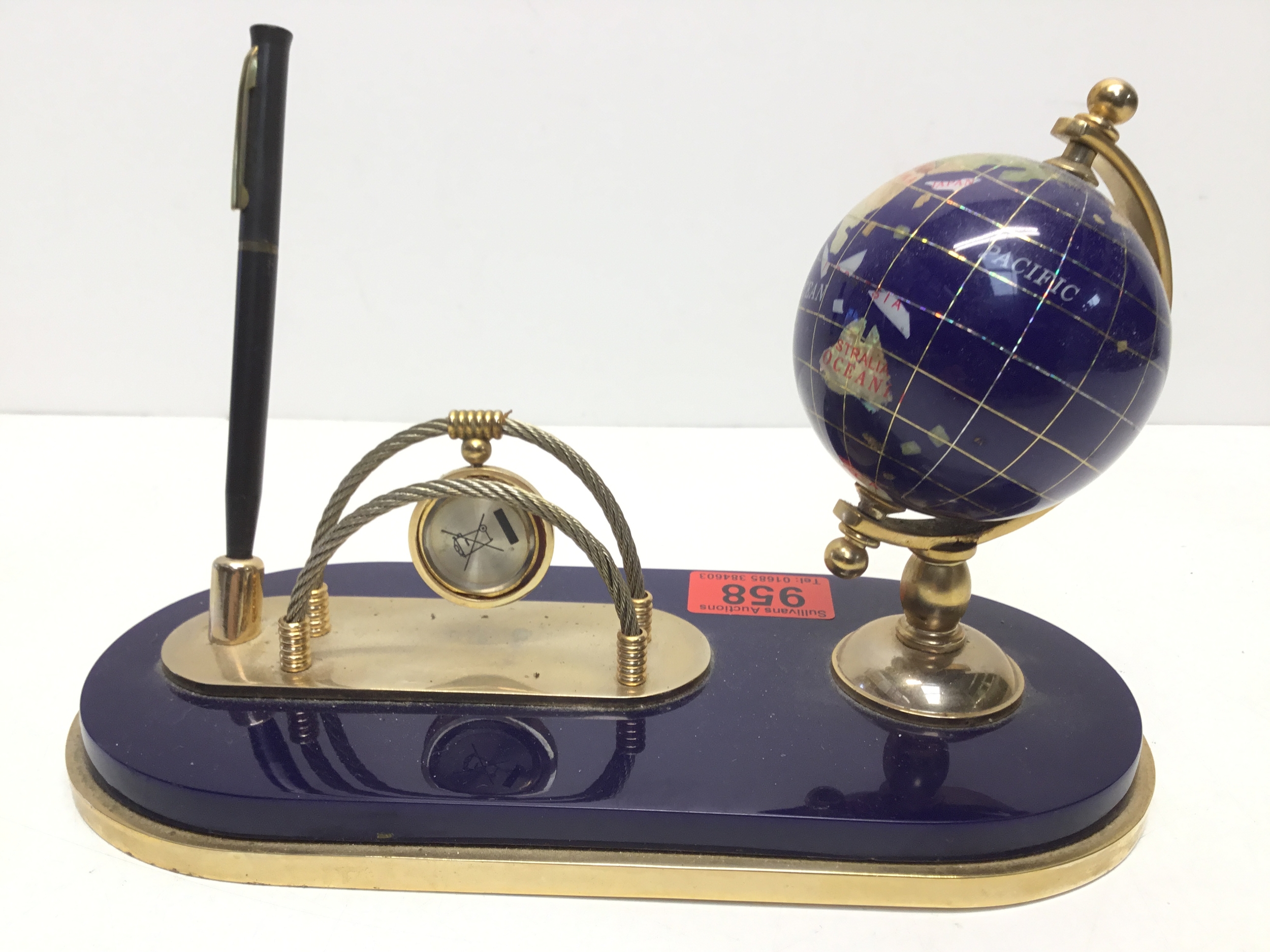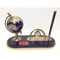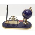 Semi precious lapis blue globe, pen, clock and business card holder