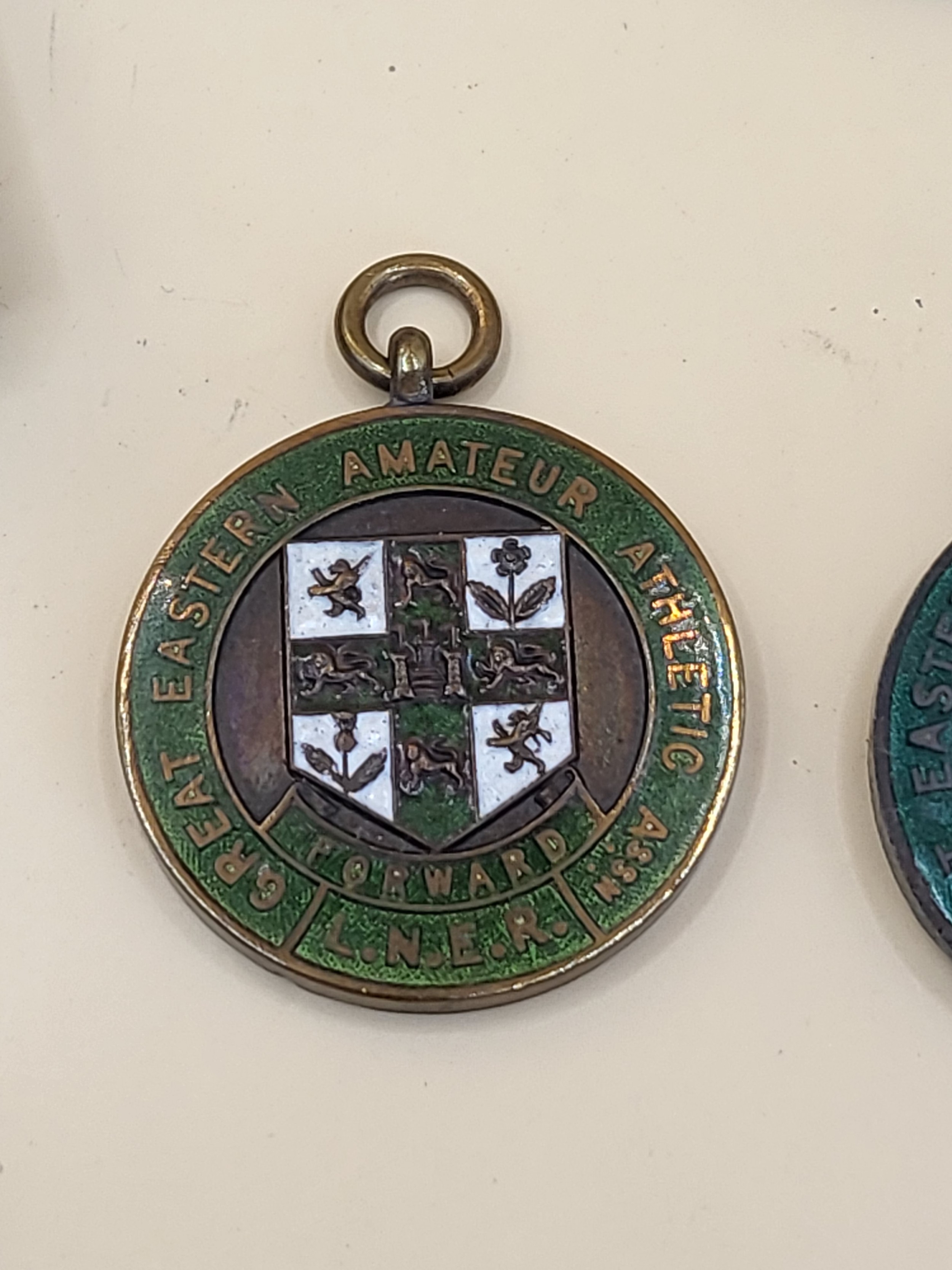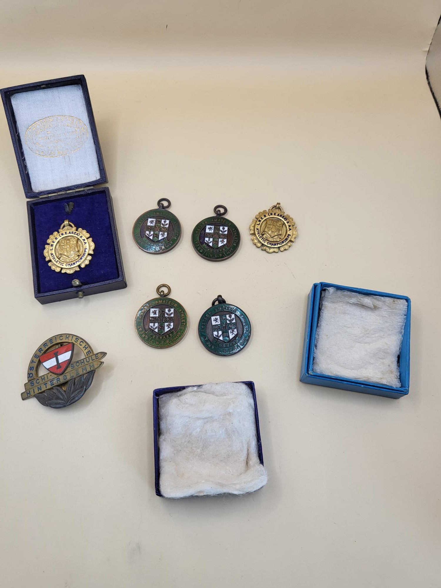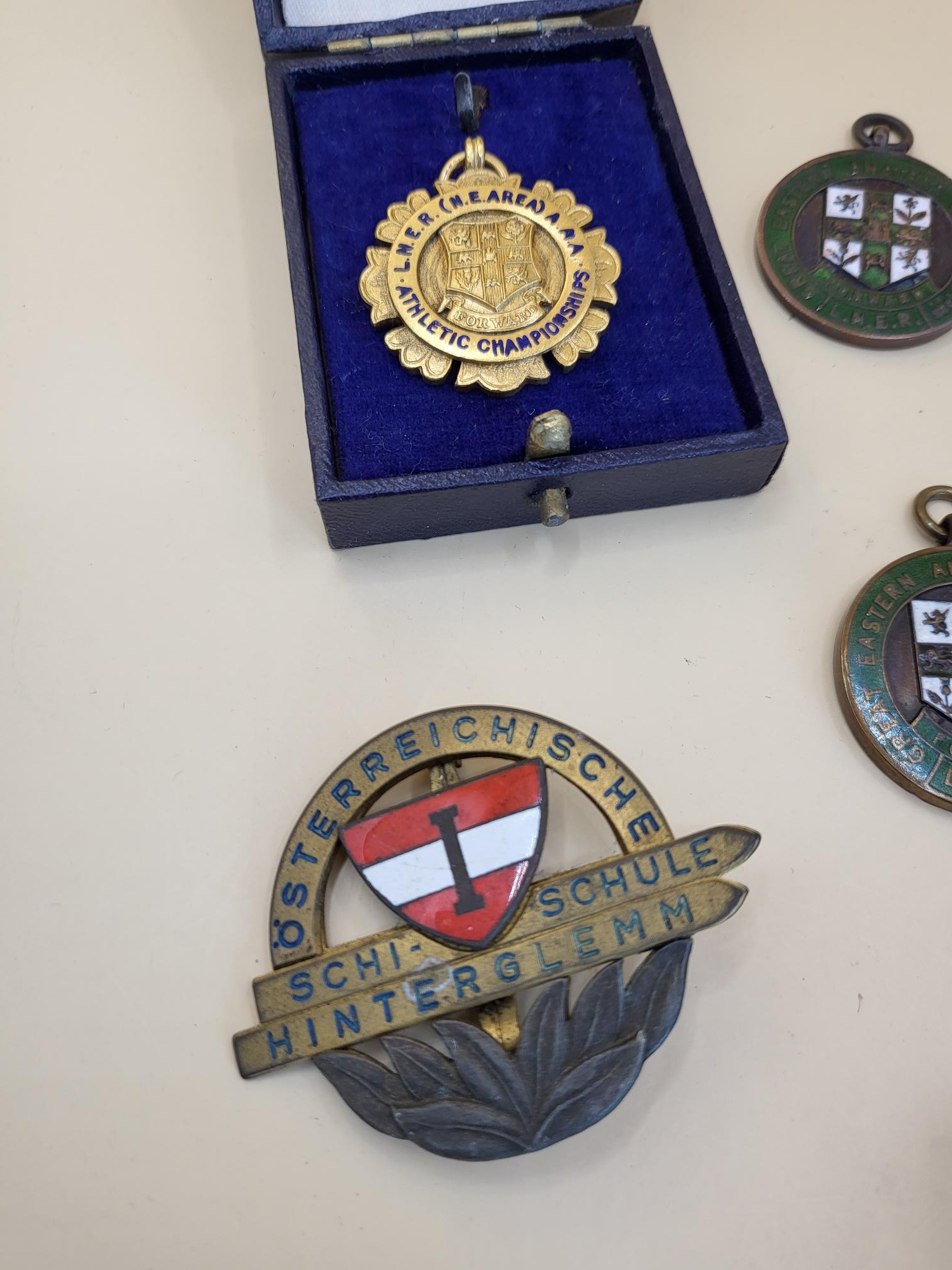 Six L.N.E.R Medals ( Not Silver) along with Austrain Ski Medal Badge
