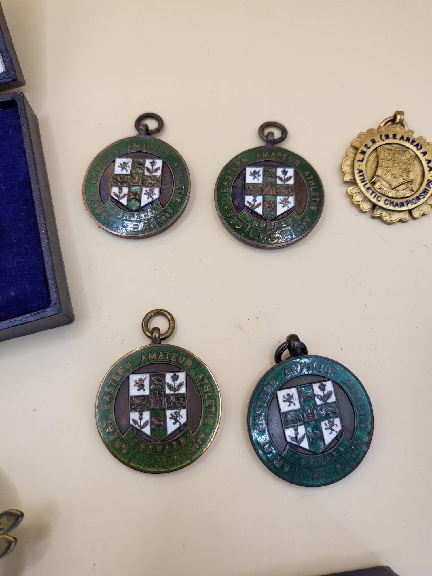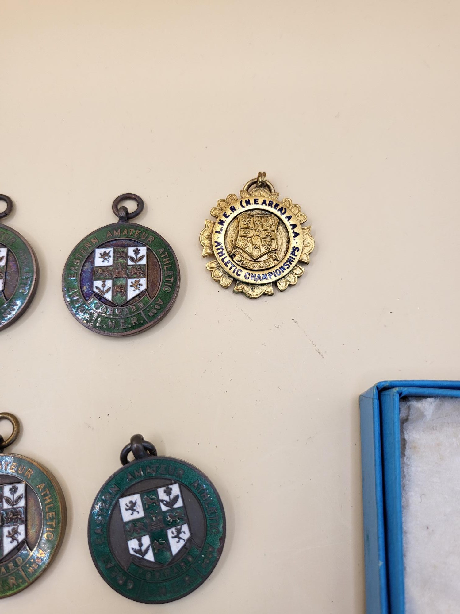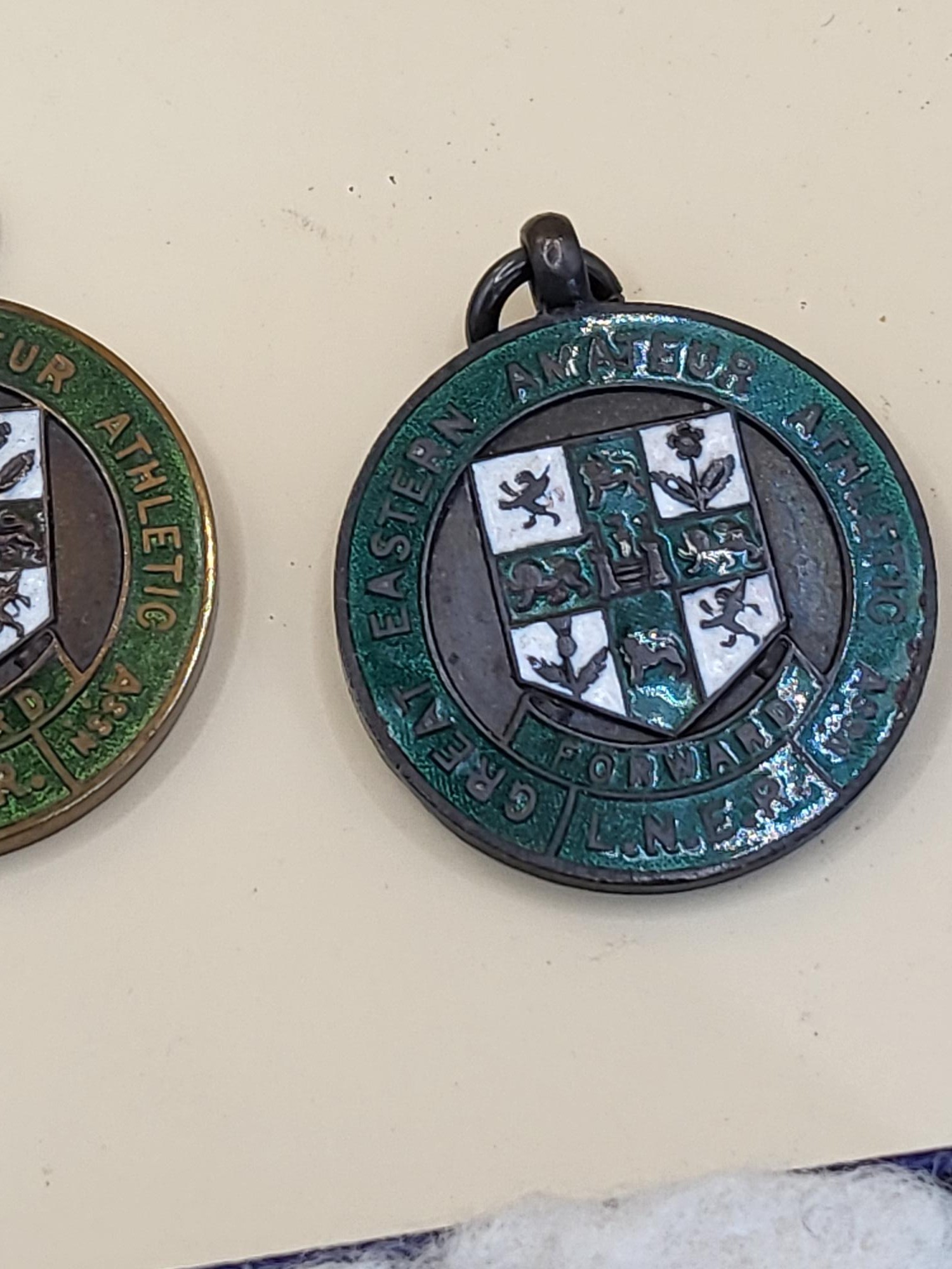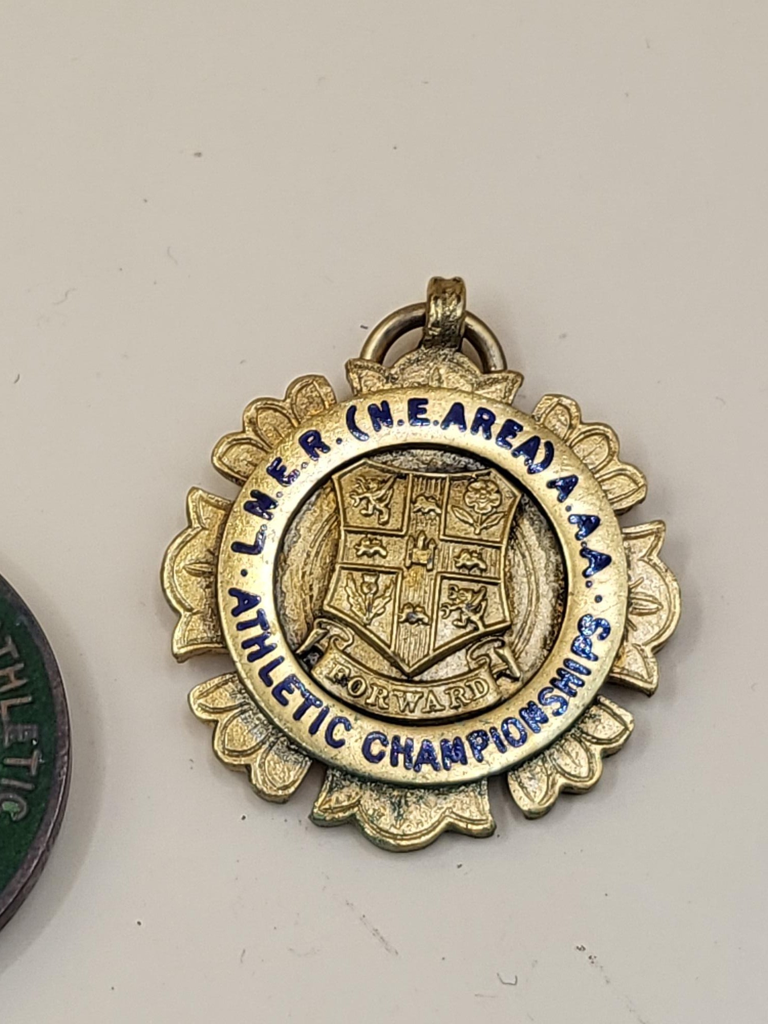 Six L.N.E.R Medals ( Not Silver) along with Austrain Ski Medal Badge