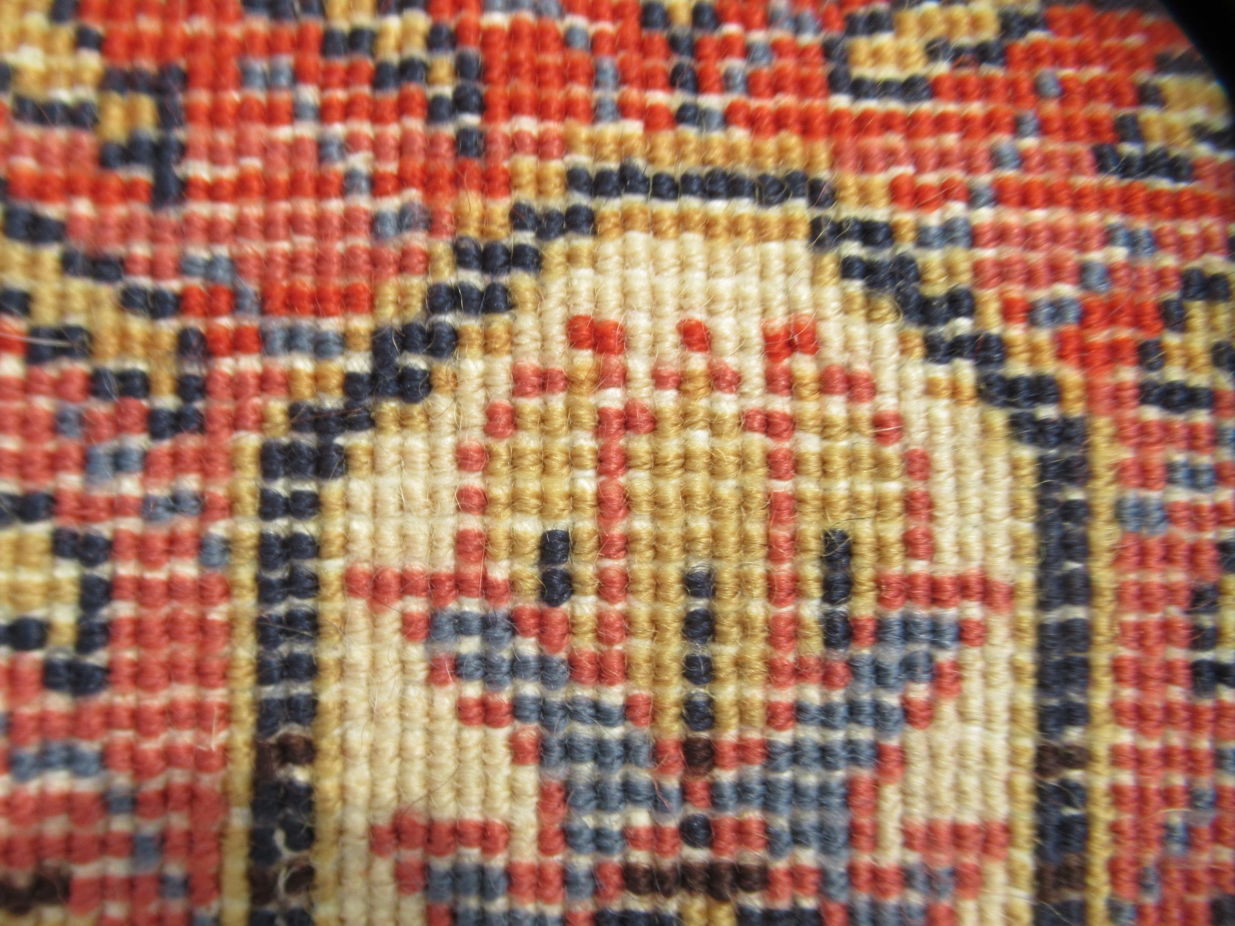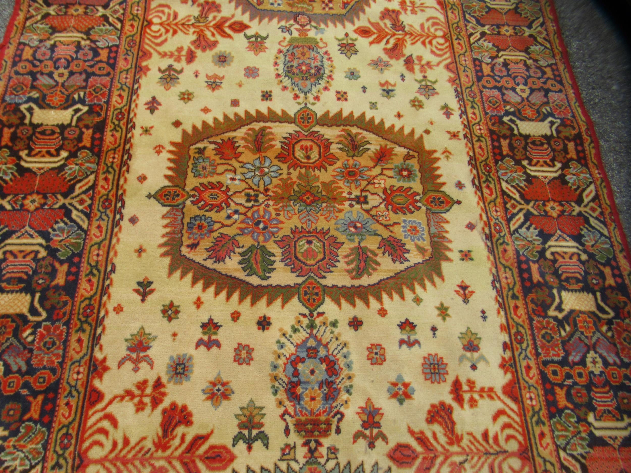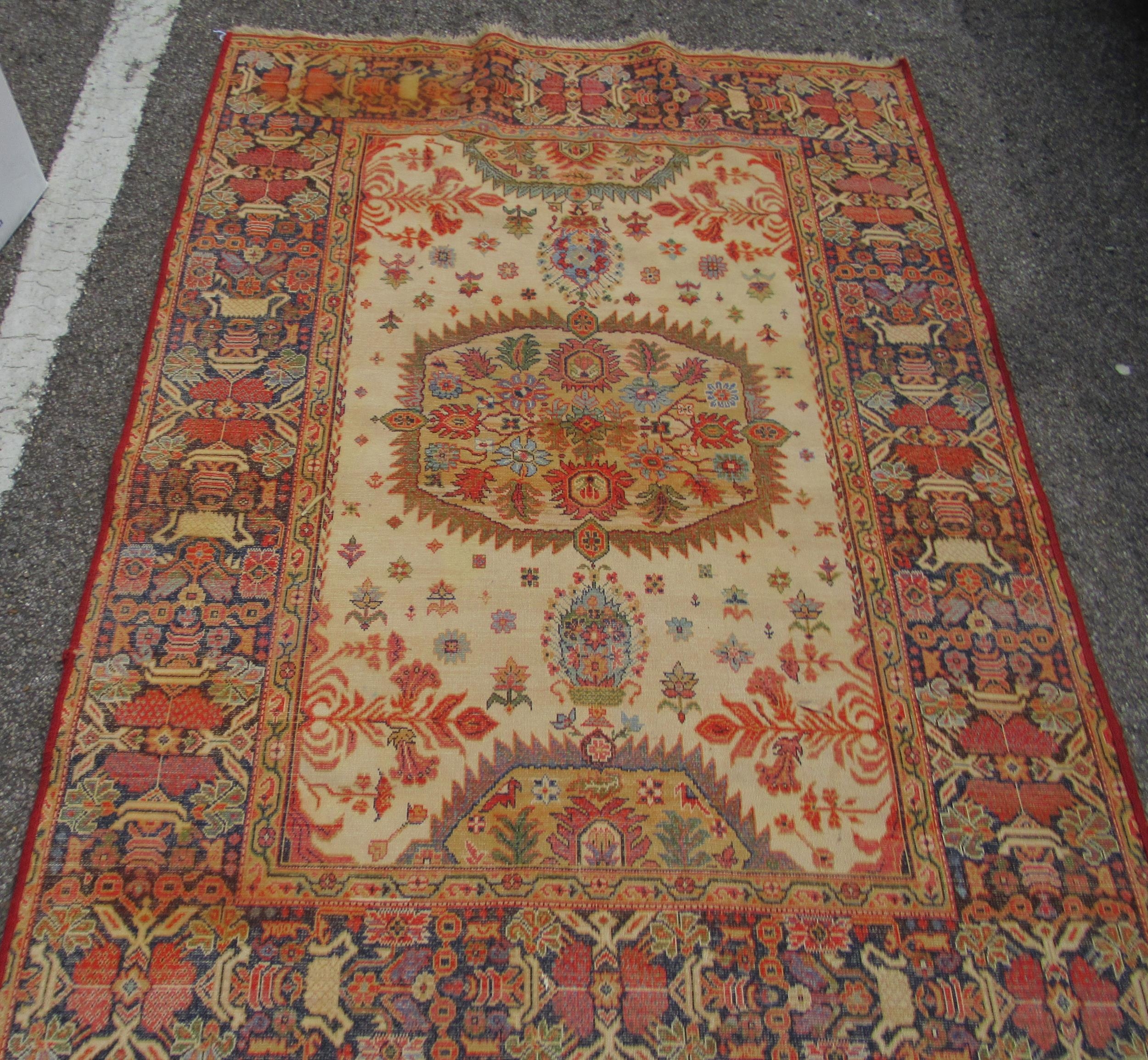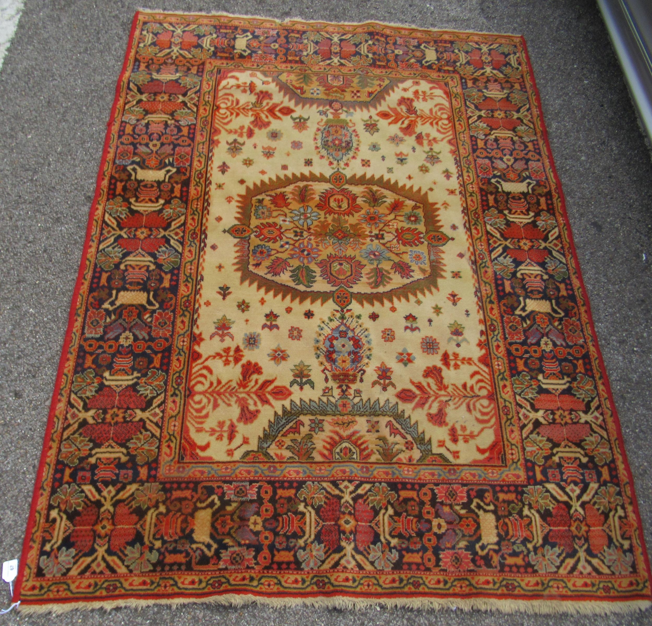 A Persian Bachtia design rug, on a burnt orange and multi-coloured ground 54" x 74"