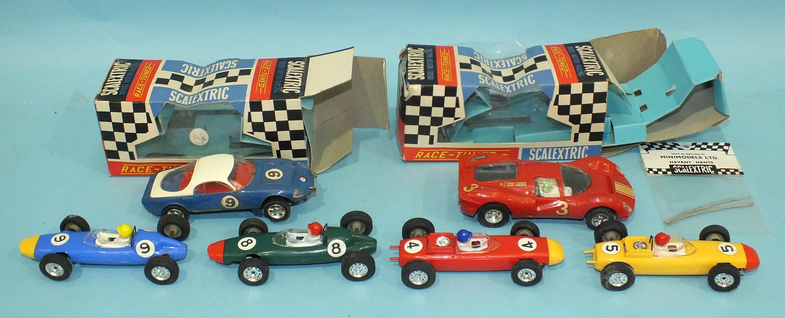 Scalextric C2 Matrajet "Race-Tuned" RN9, blue, boxed, (car a/f), C16 Ferrari P4, RN3, red, boxed and four unboxed slot cars: C72 BRM (x2) and C73 Porsche (x2).