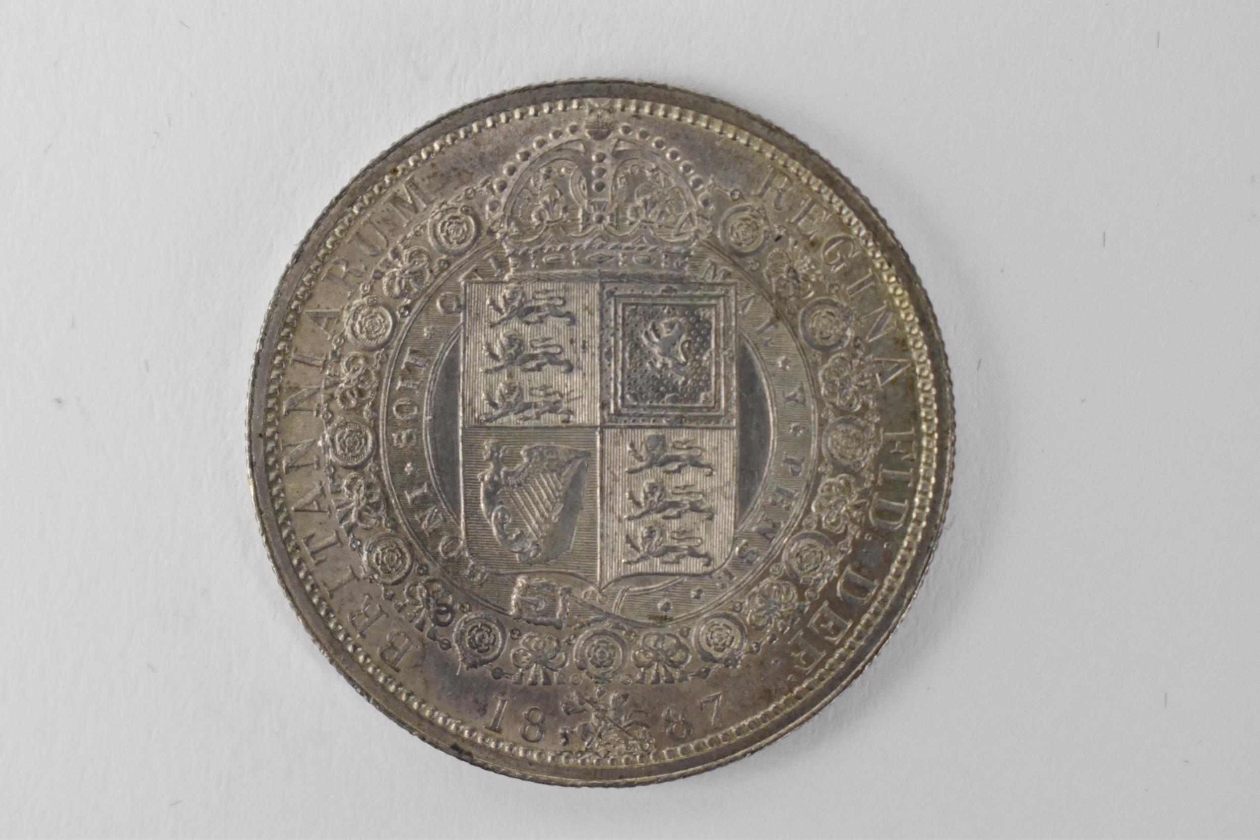 United Kingdom - Victoria (1837-1901) Half Crown, dated 1887, 2nd portrait, crowned and veiled bust, 'Jubilee Head', Queen Victoria, left, VICTORIA DEI GRATIA./. crowned shield, within garter, BRITANNARUM REGINA FID DEF