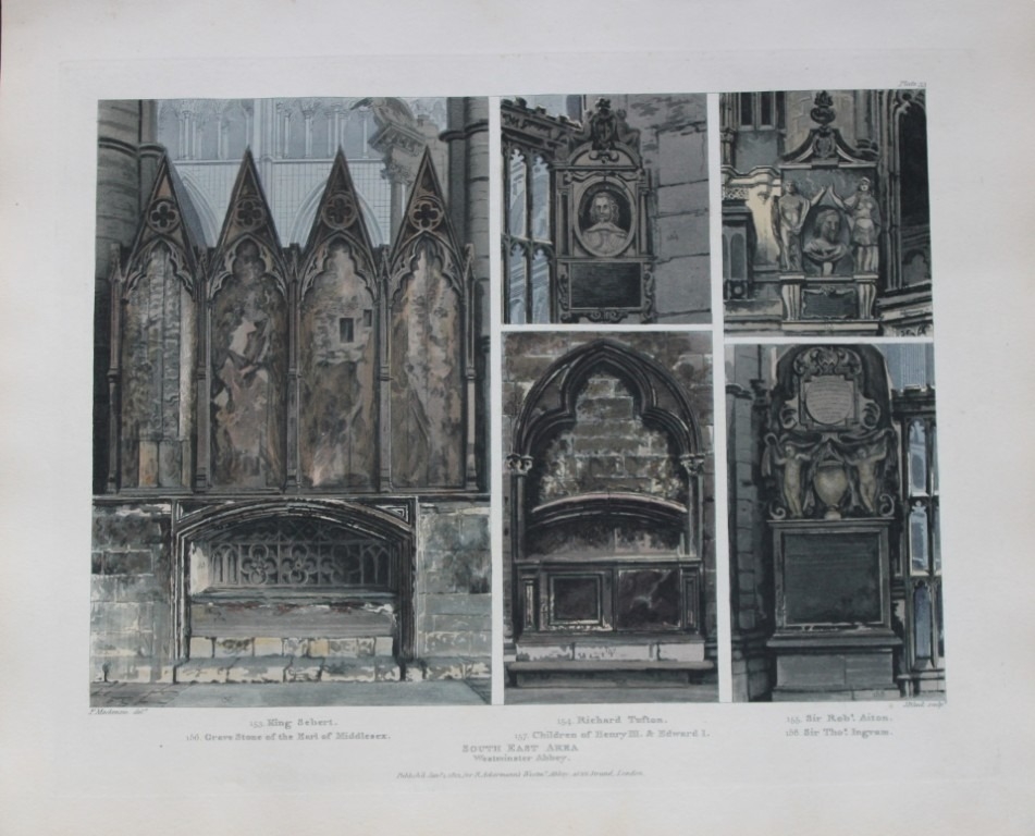 One of the quintessential English Regency colour-plate books. This work is a superbly illustrated study of one of the most interesting edifices in the British Empire. Its remote antiquity, its edificial beauty, the character and variety of its architecture, as well as the ornament it affords to the metropolis, give it a superior distinction. Ackermann employed a variety of artists to bring out in the plates the lustre of stained glass windows and the dim religious light of the chapels.